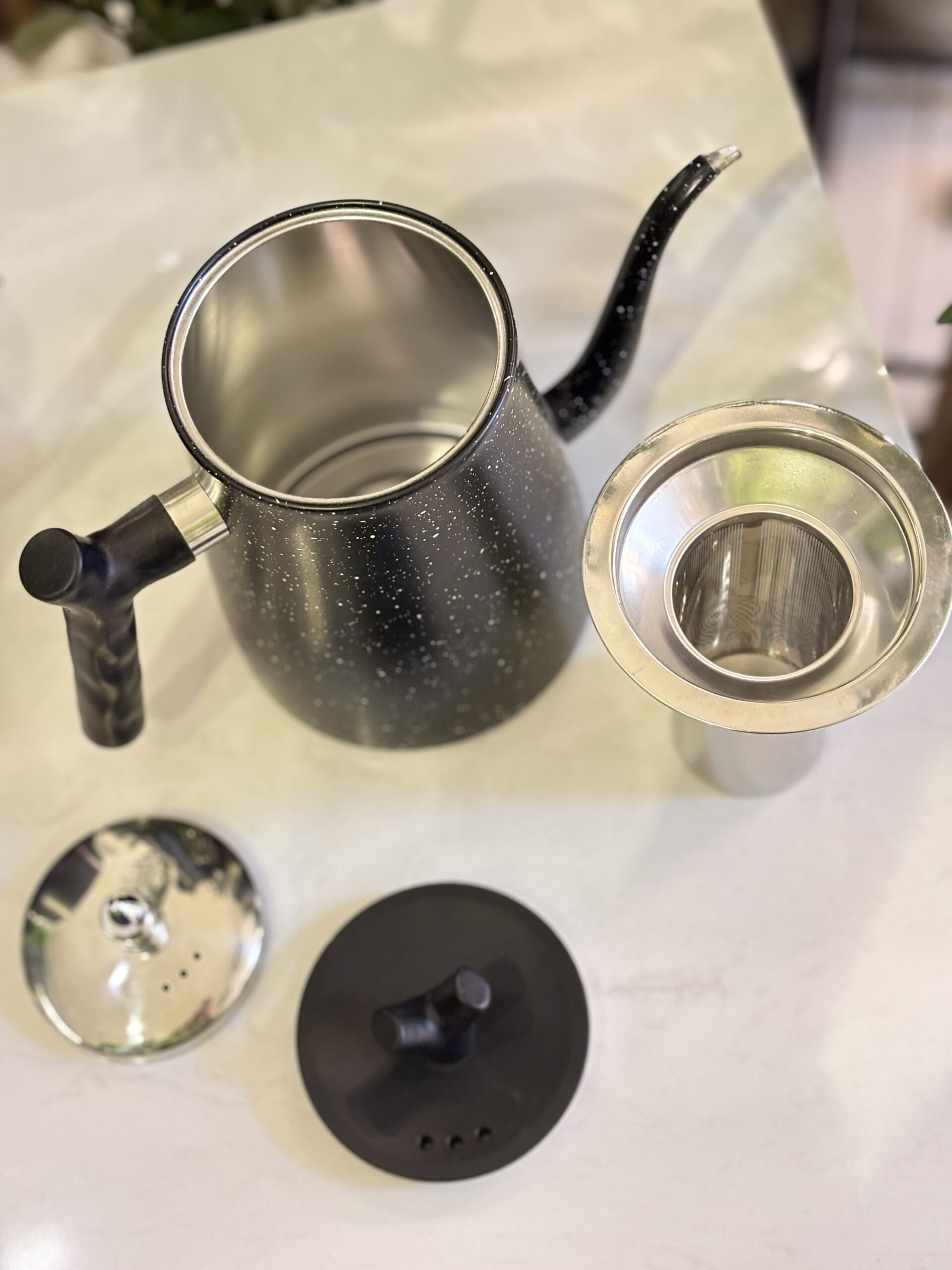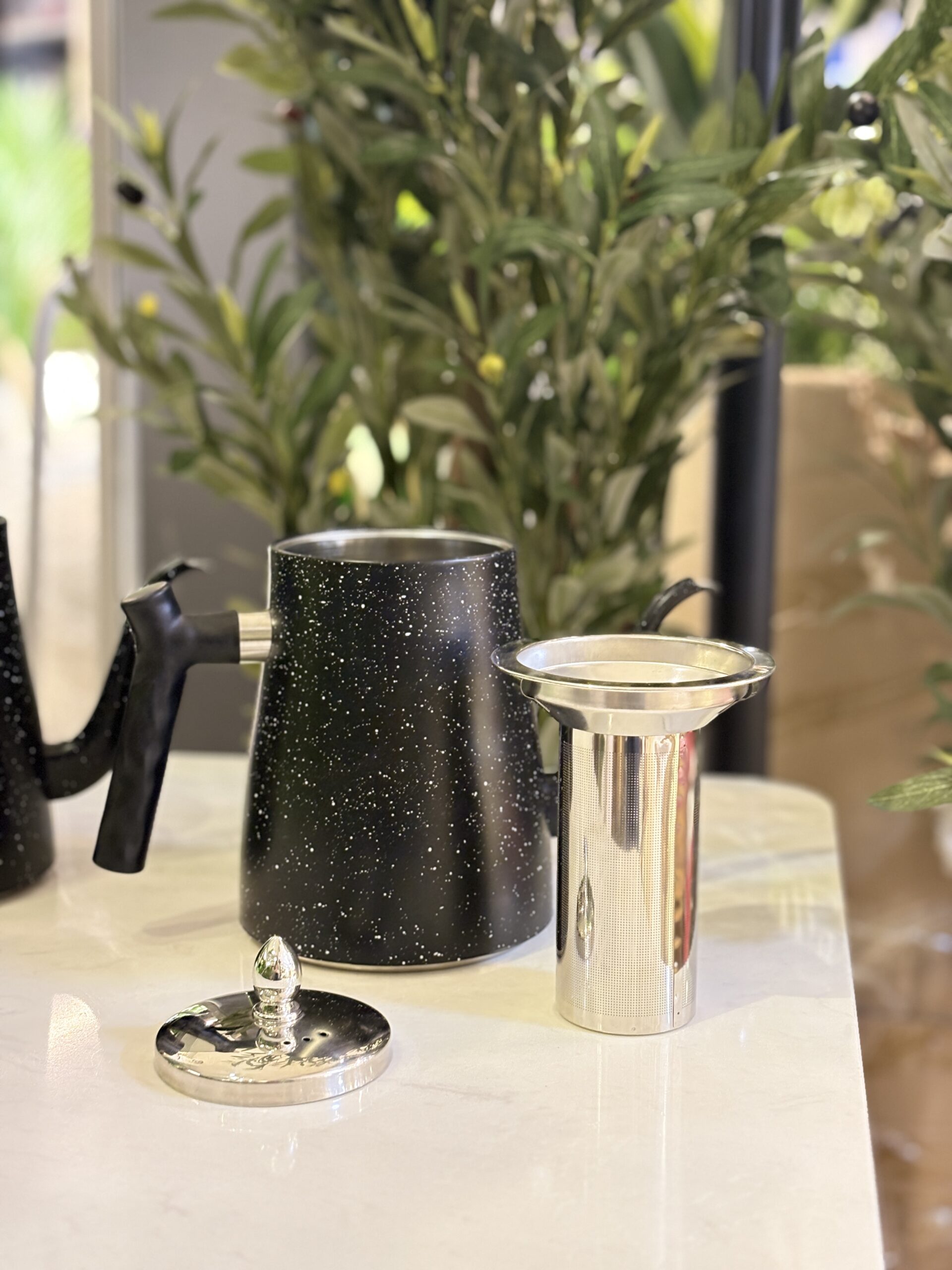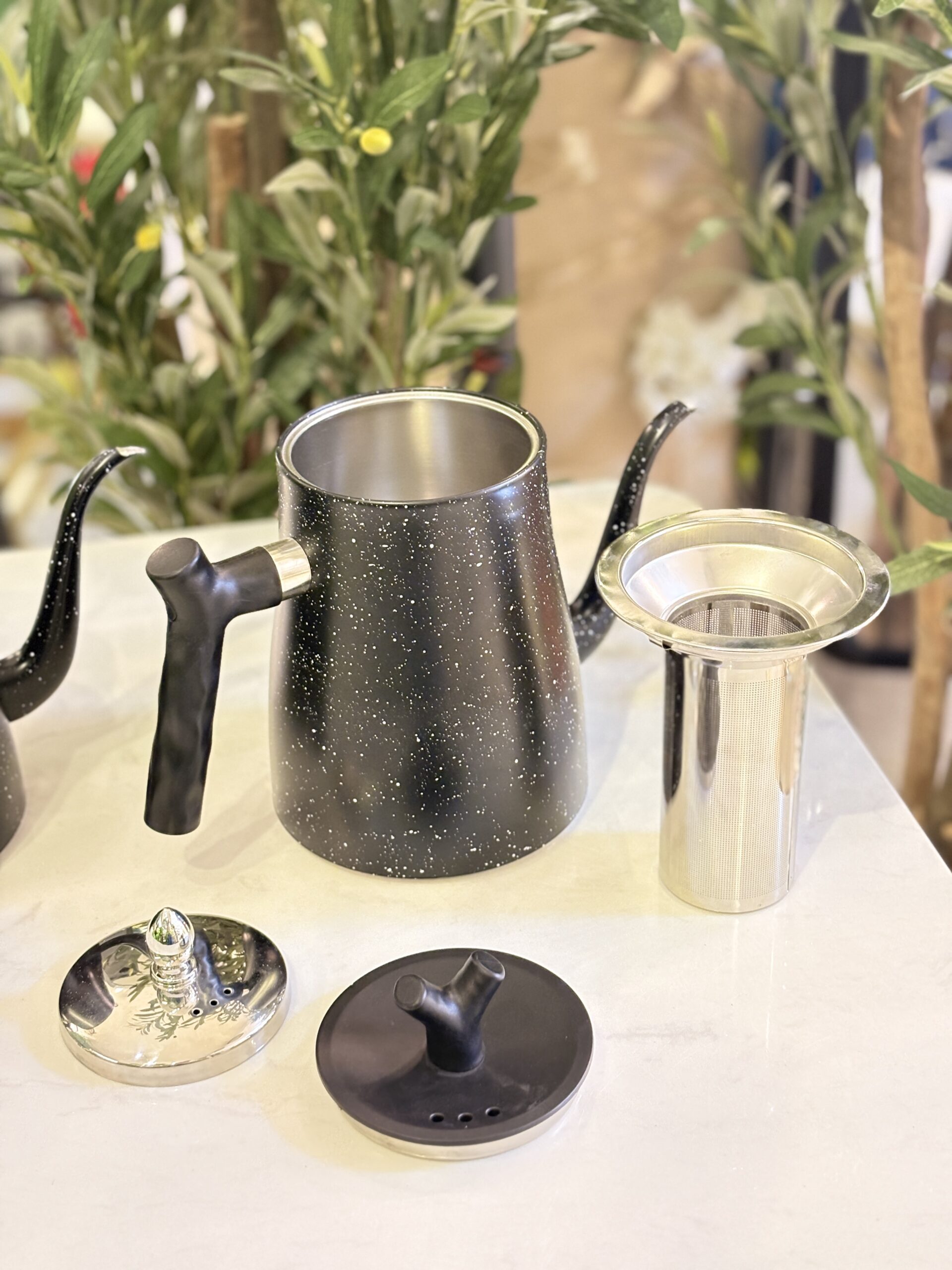 ابريق شاي اسود 1.5 لتر مع غطا ستانليس وغطا اسود و مصفاية