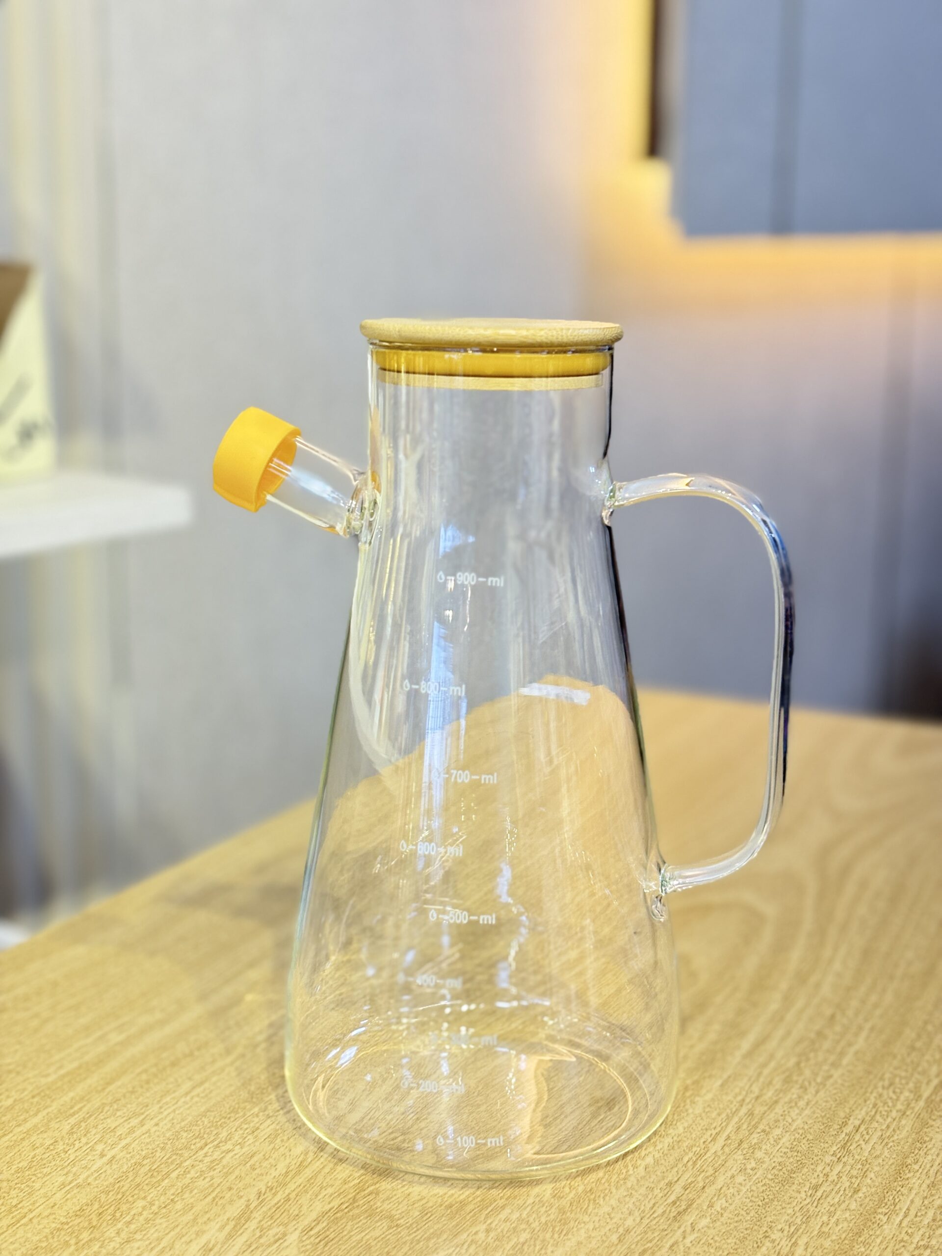ابريق غطا بامبو للزيت او عصائر او عيار