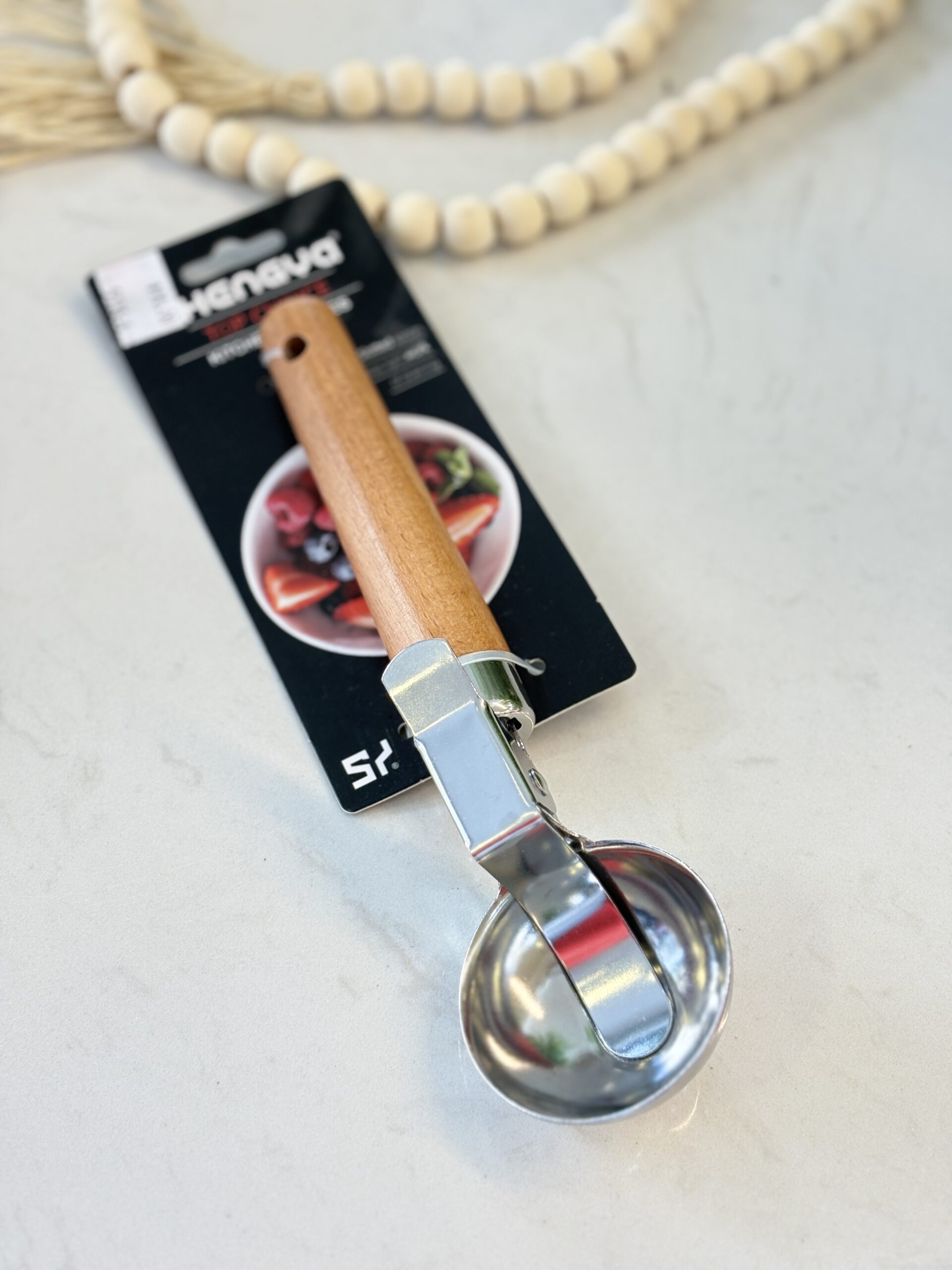 مصفاية للطعام مع يد خشبية