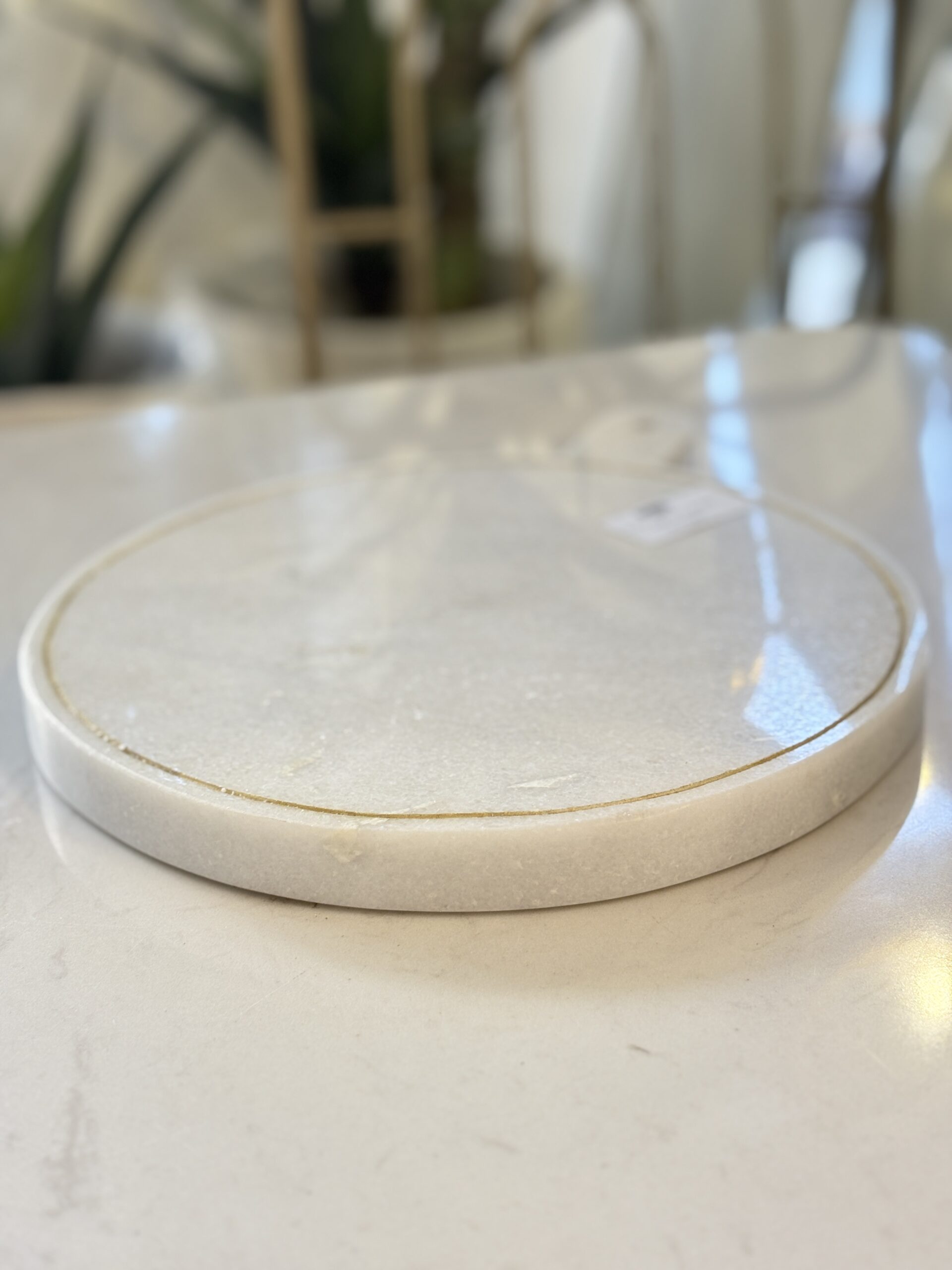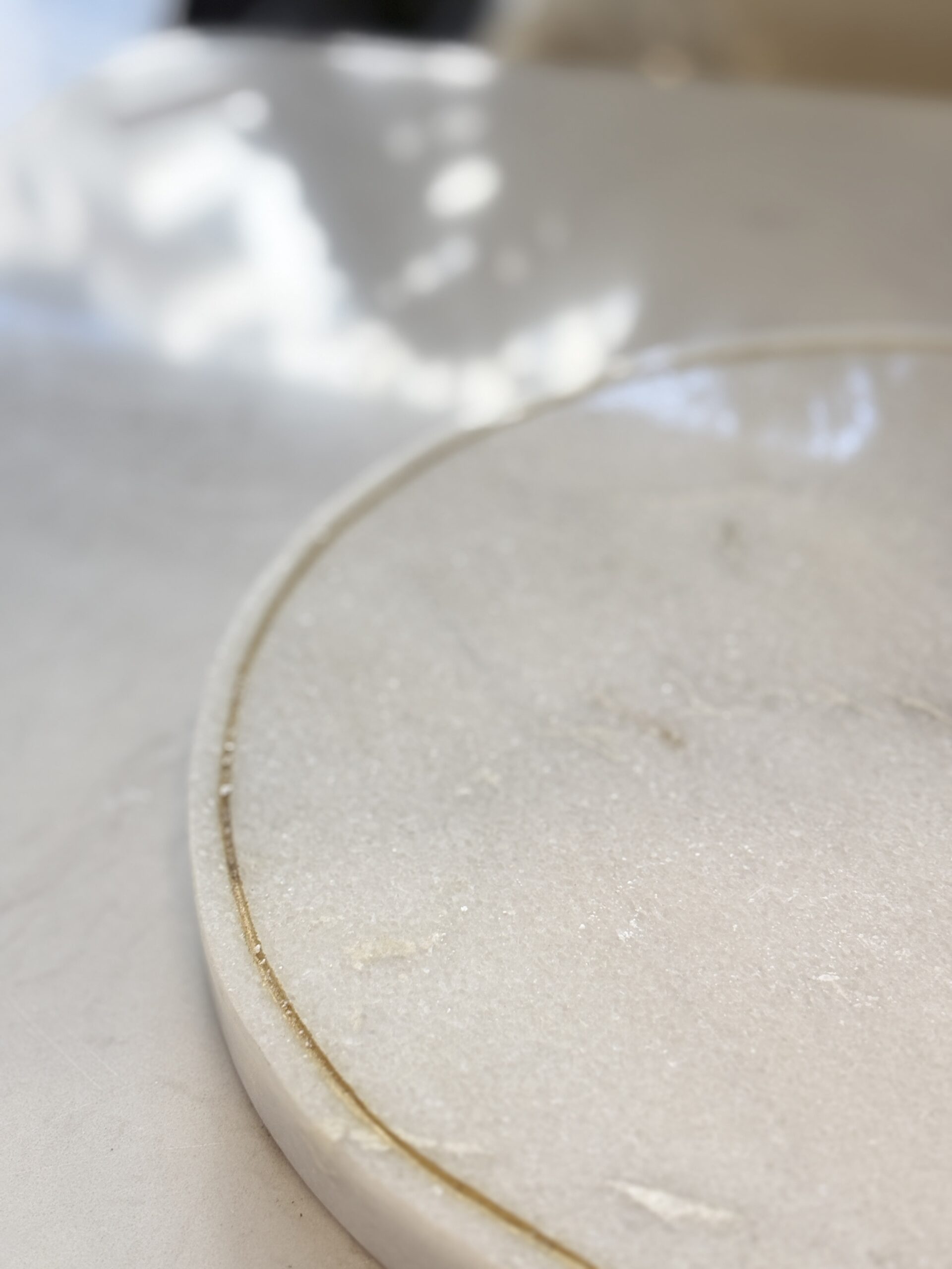 صينية ديكور رخام مدور بيد 26سم للتقديم او الديكور