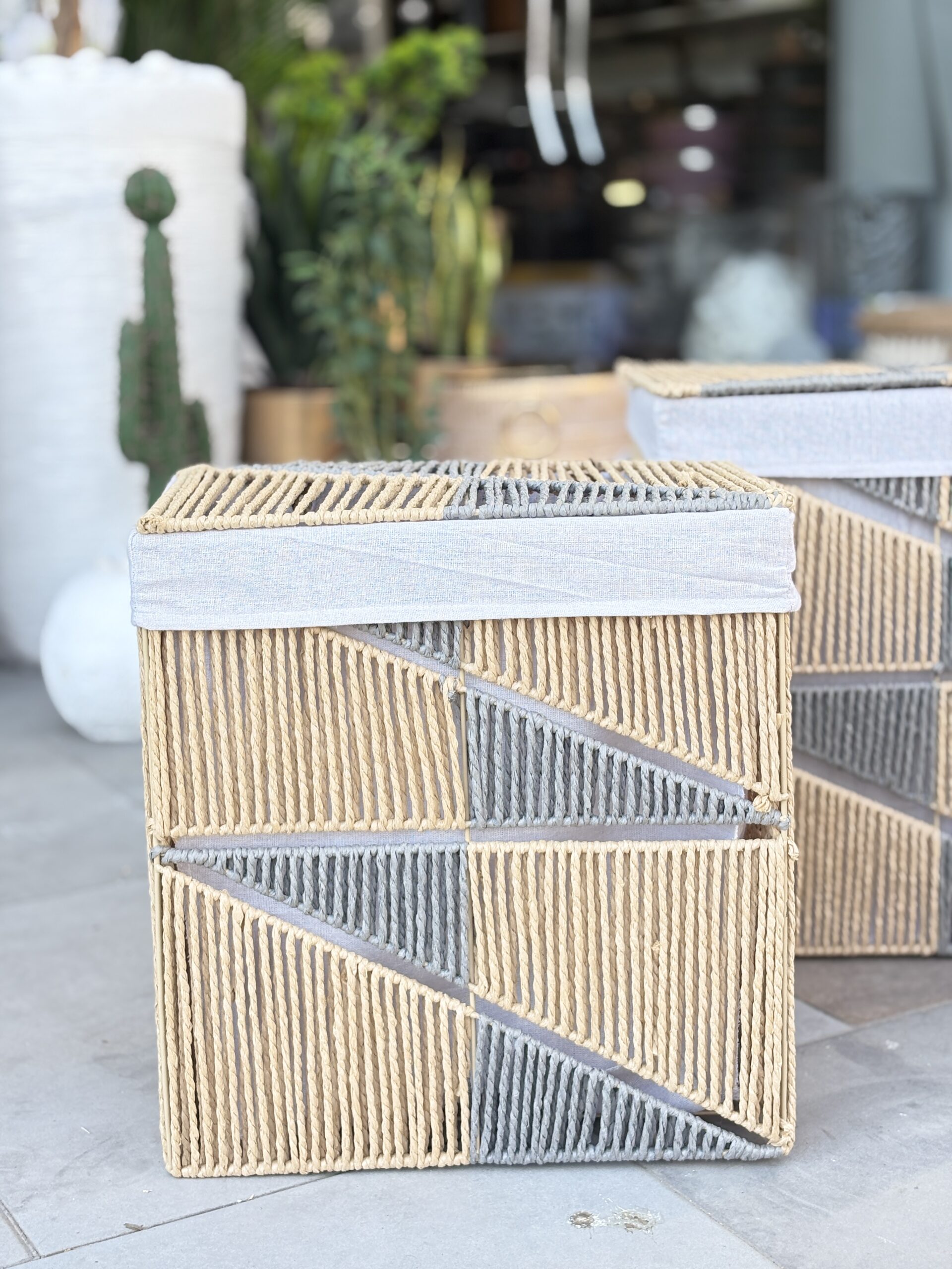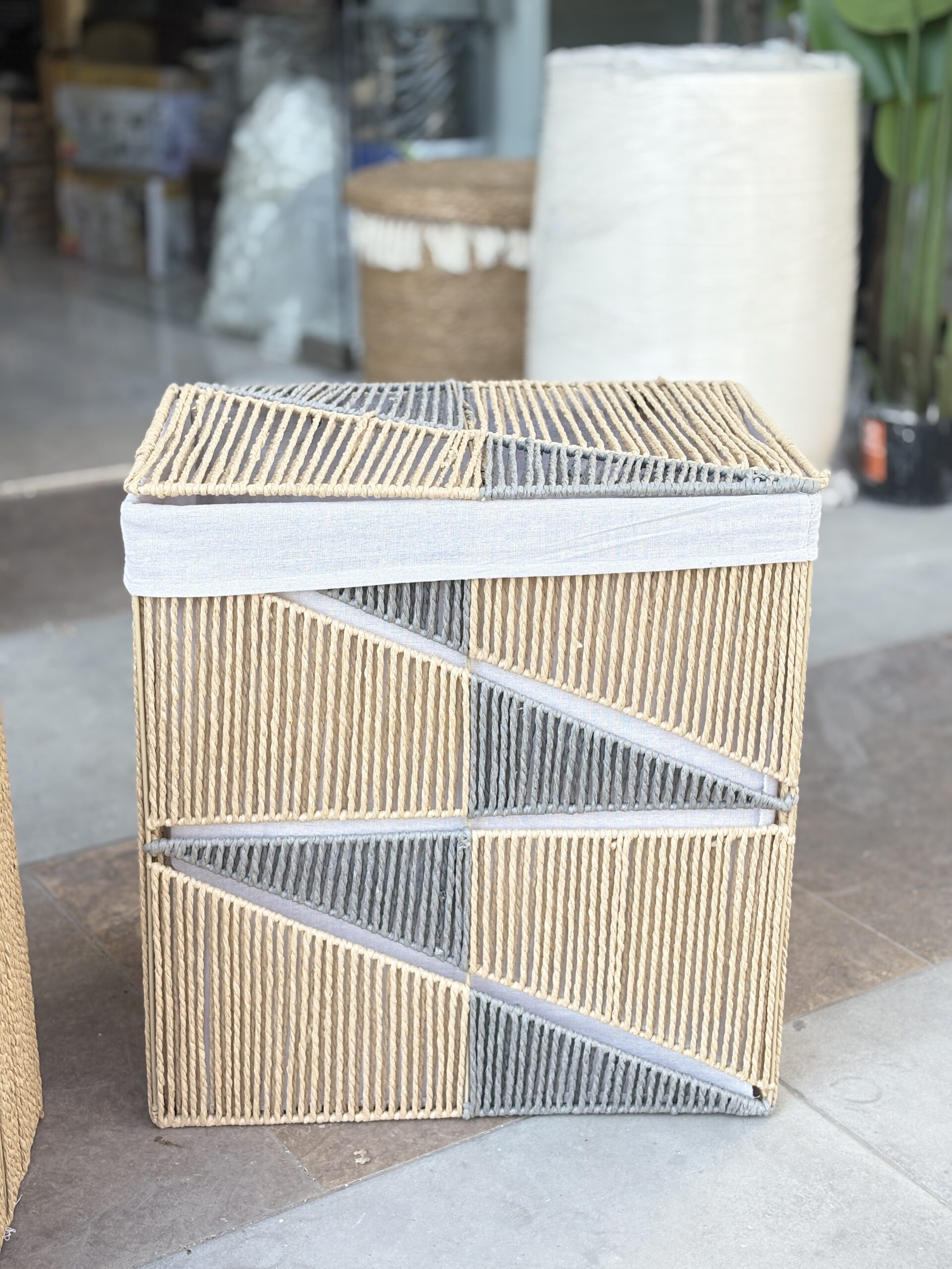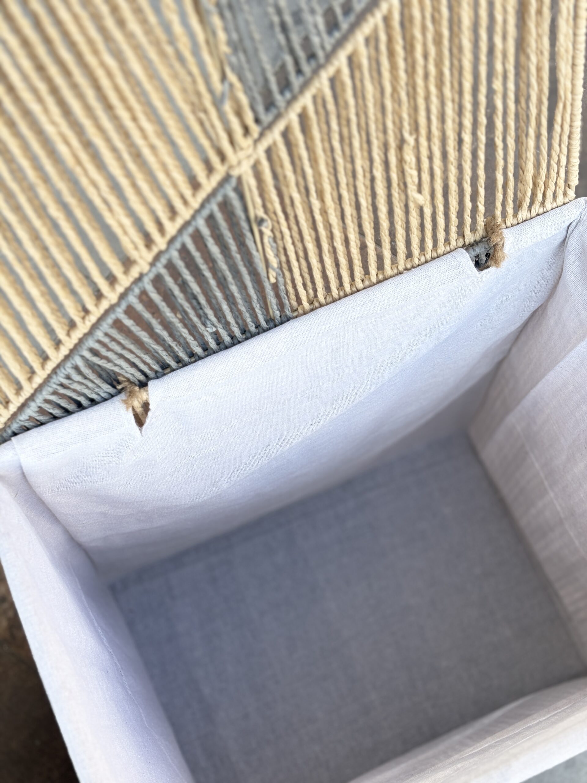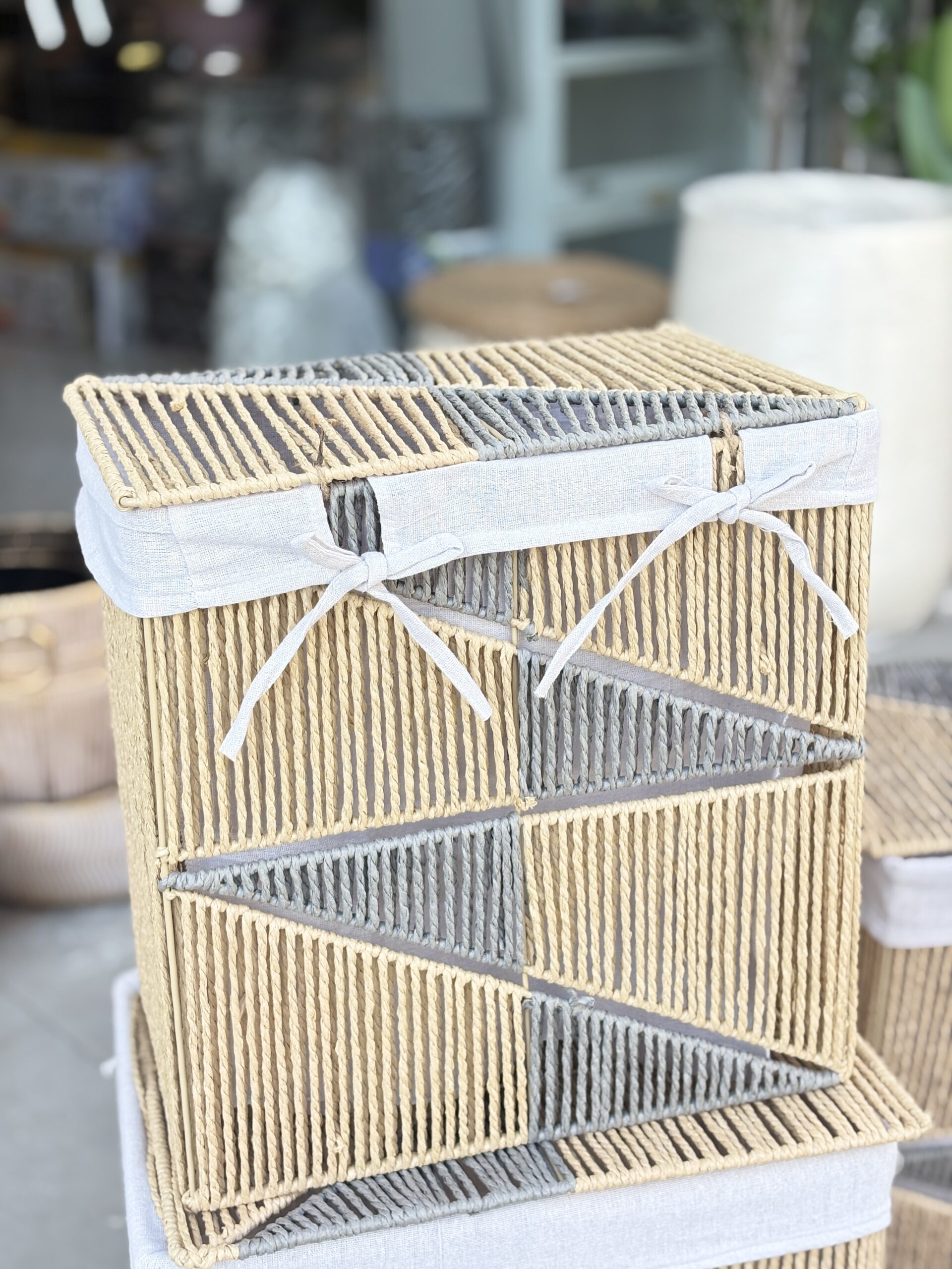 سلة قش ثقيل ابيض وعسلي