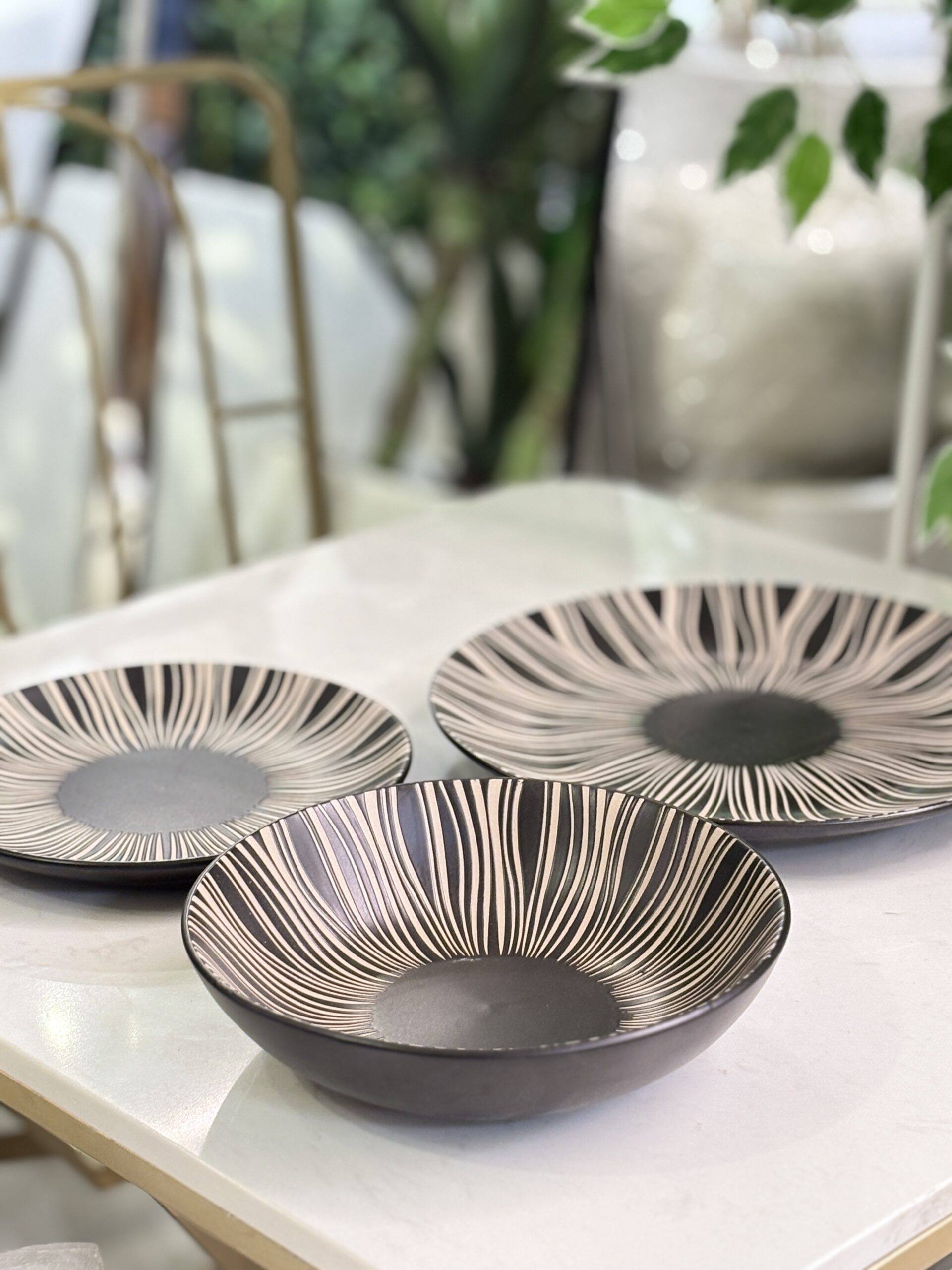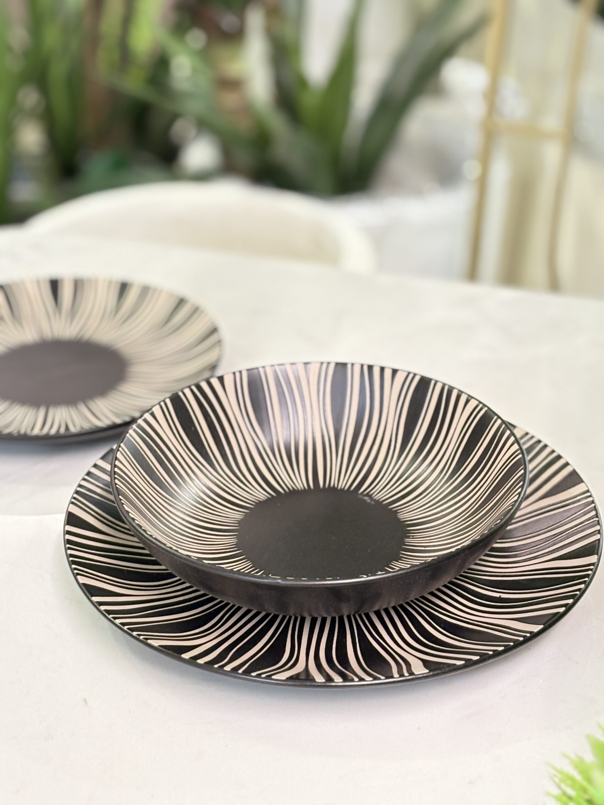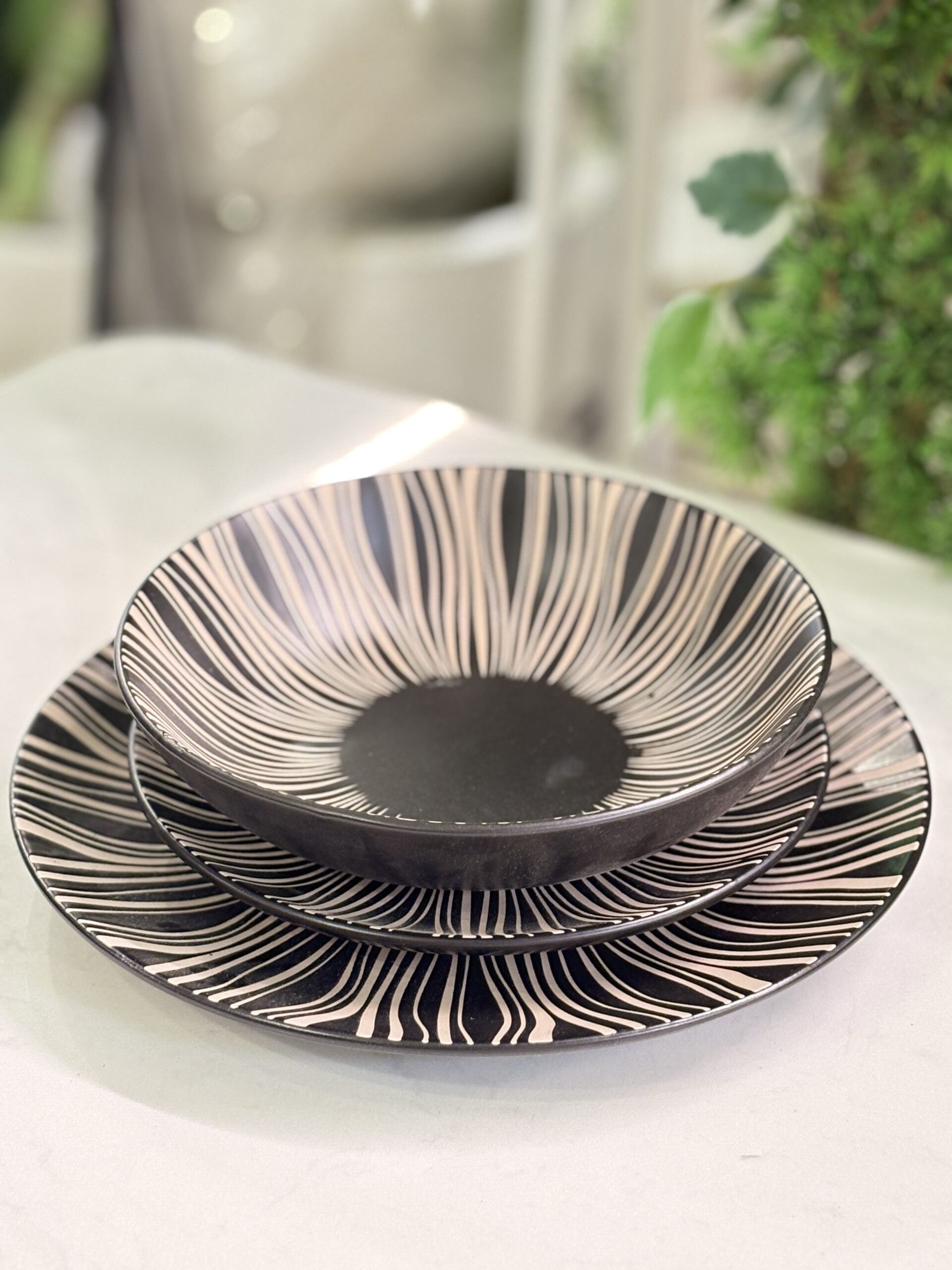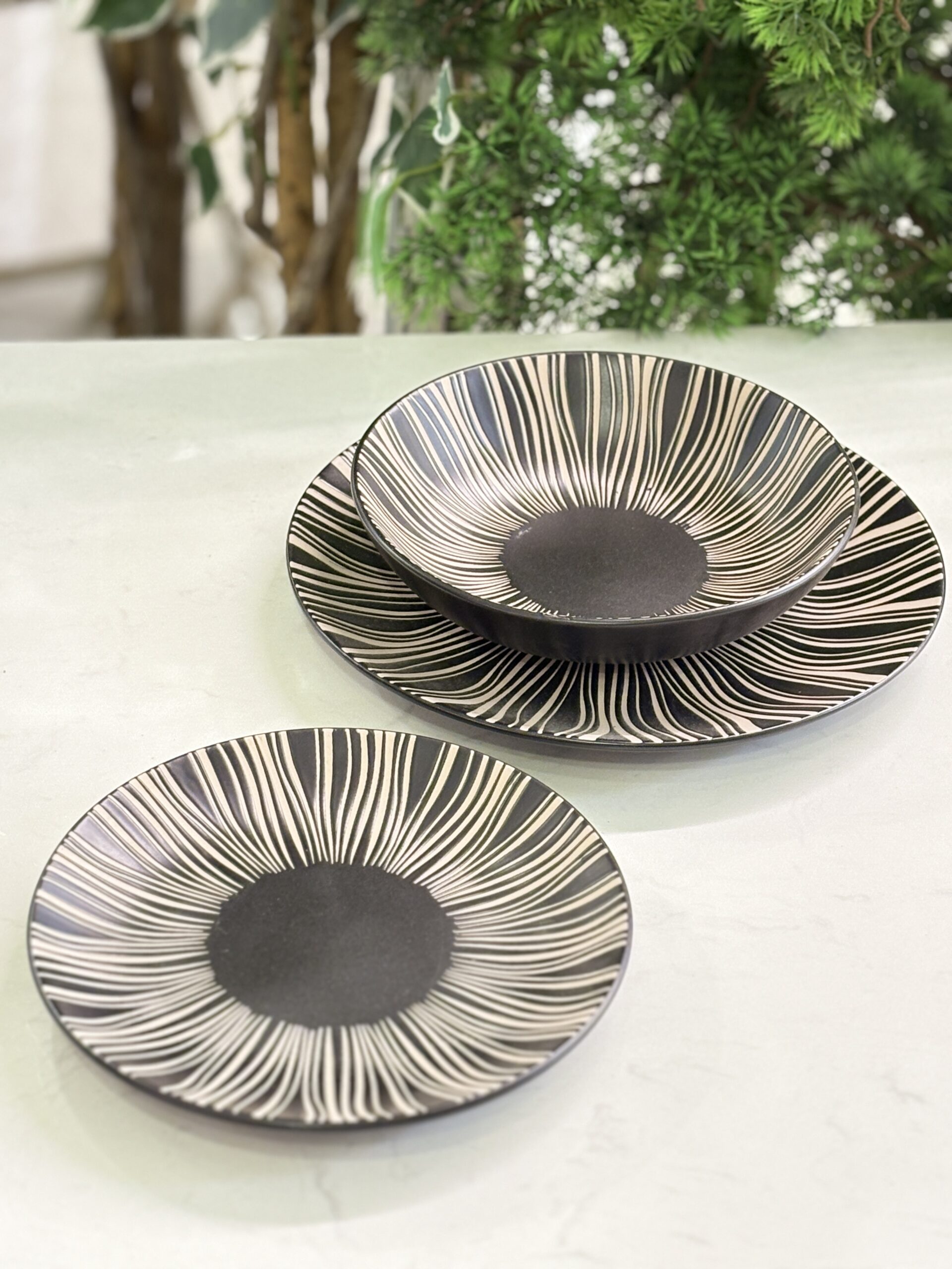 طقم صحون بورسلان 18 قطعة اسود محزز