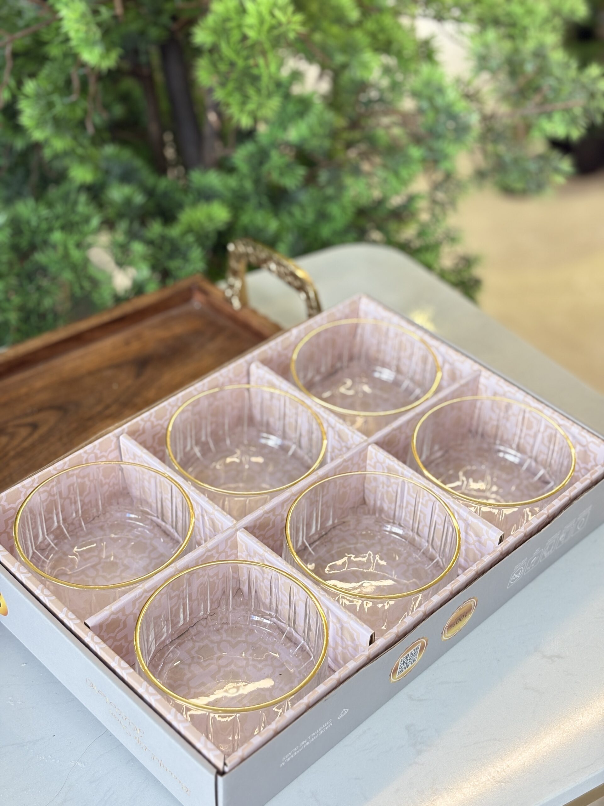طقم 6 سكريات زجاج مع غطاء حز ذهبي ميرانو