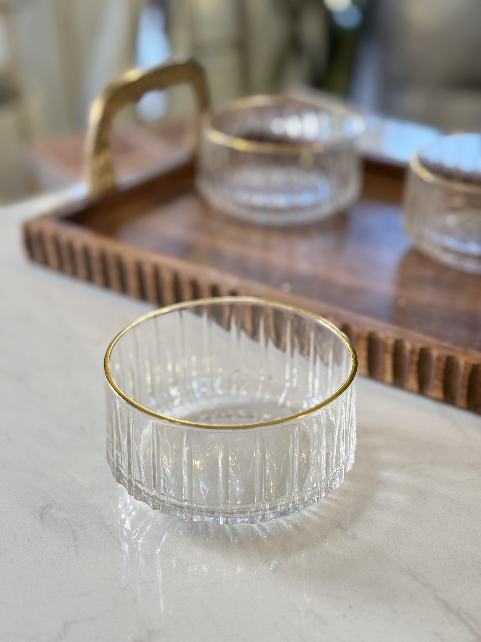 كمية طقم صحون مكسرات 10.5سم /6 زجاج سادة محفر اطار ذهبي