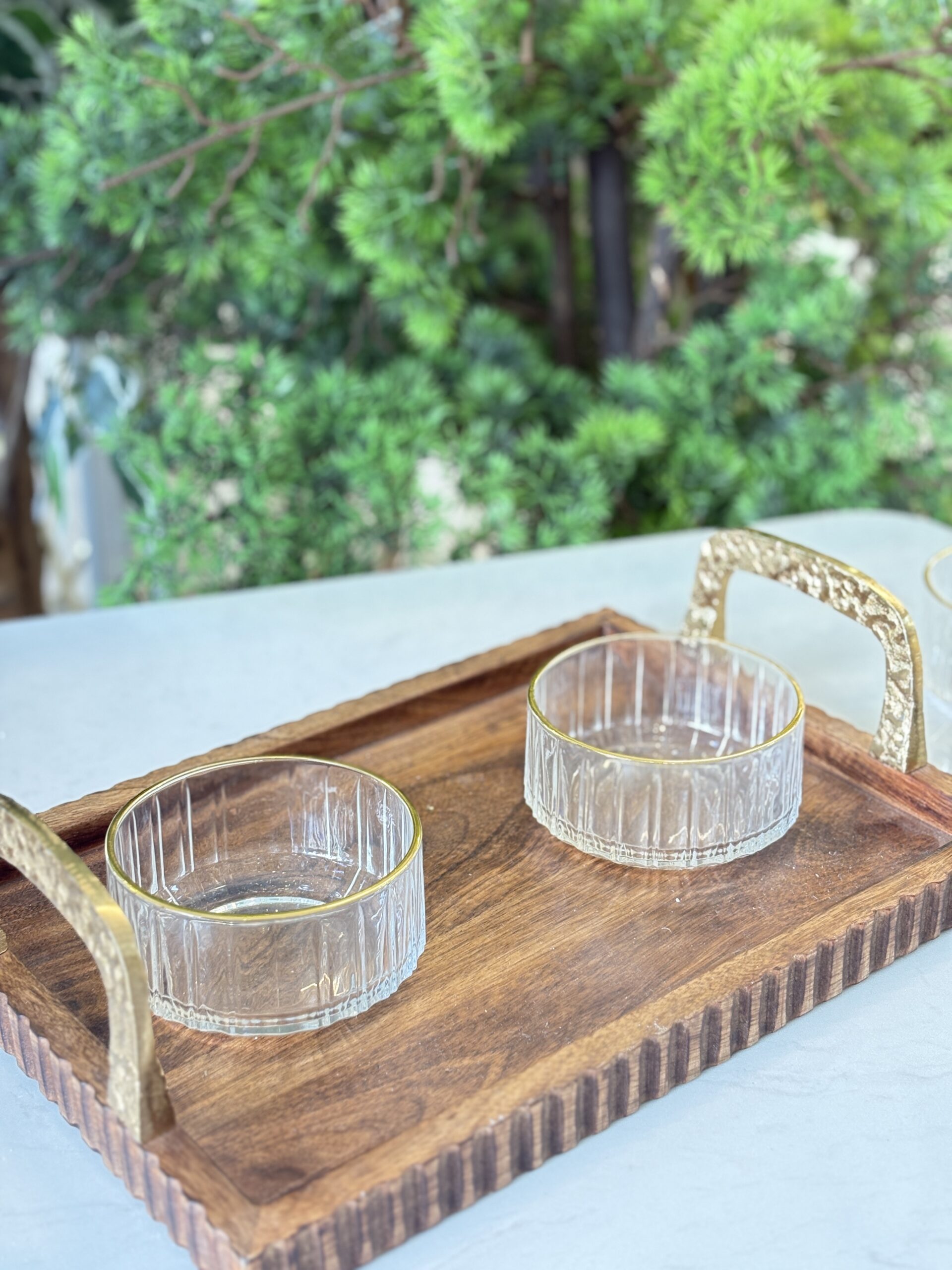 طقم صحون مكسرات 10.5سم /6 زجاج سادة محفر اطار ذهبي