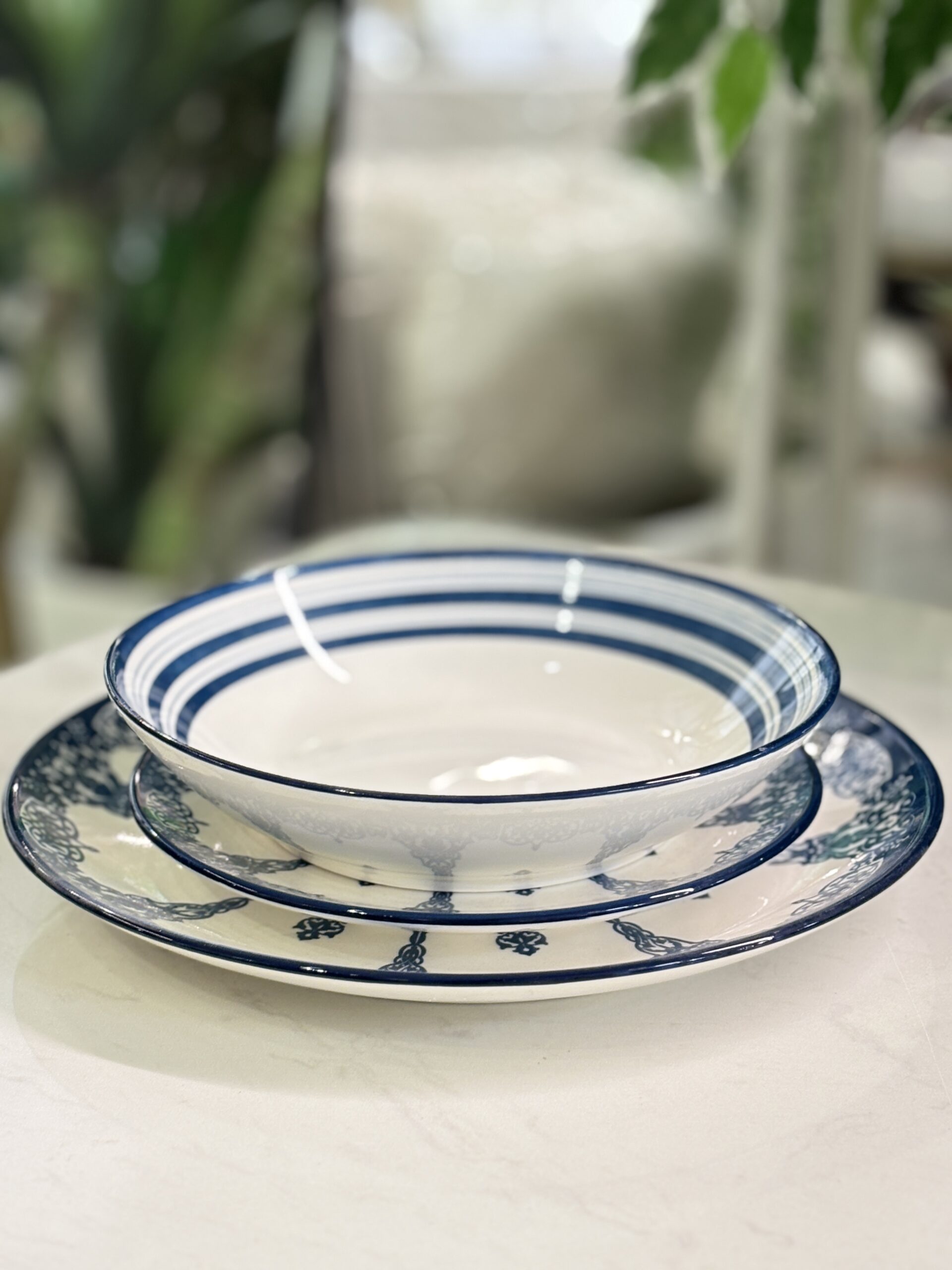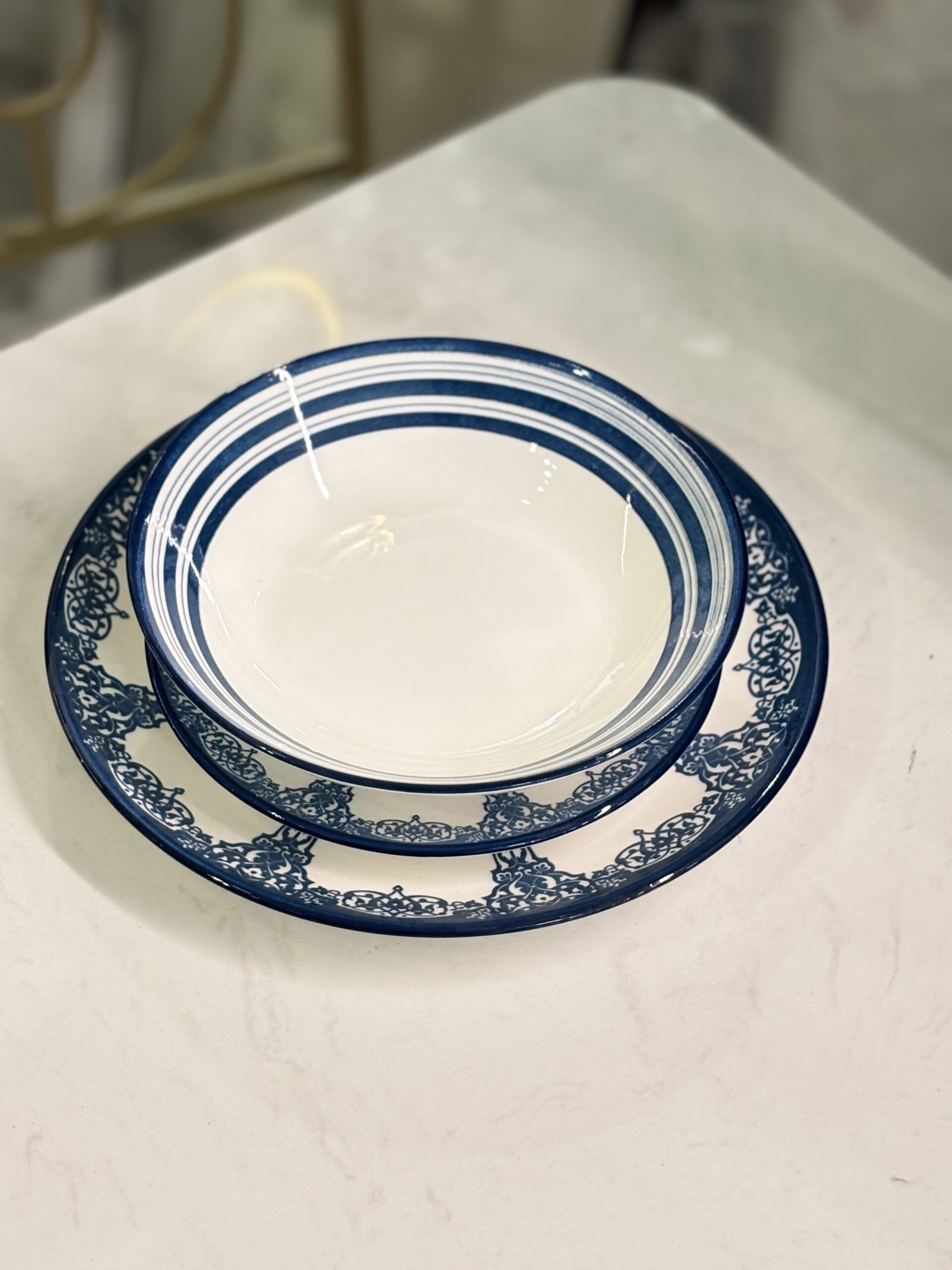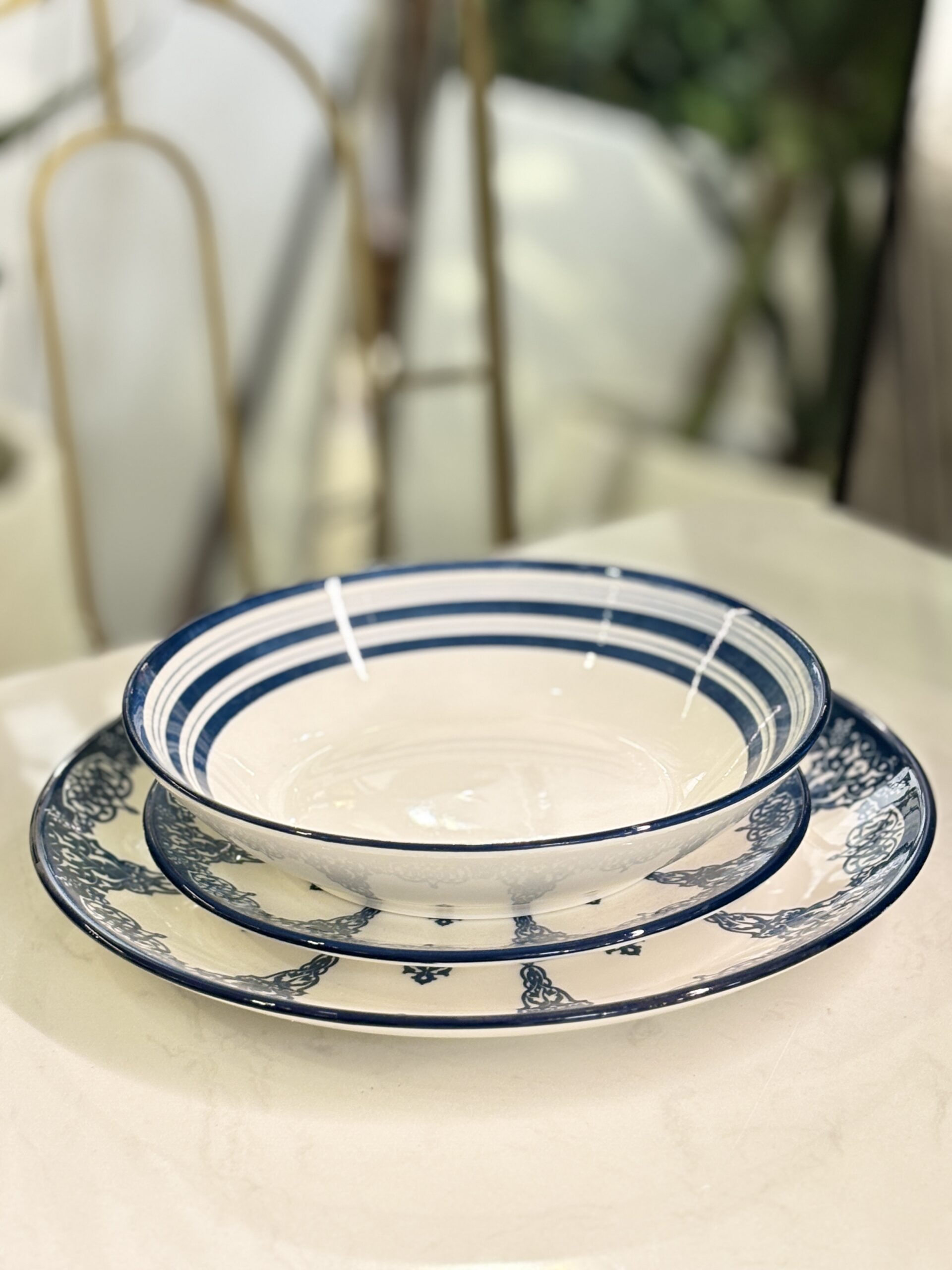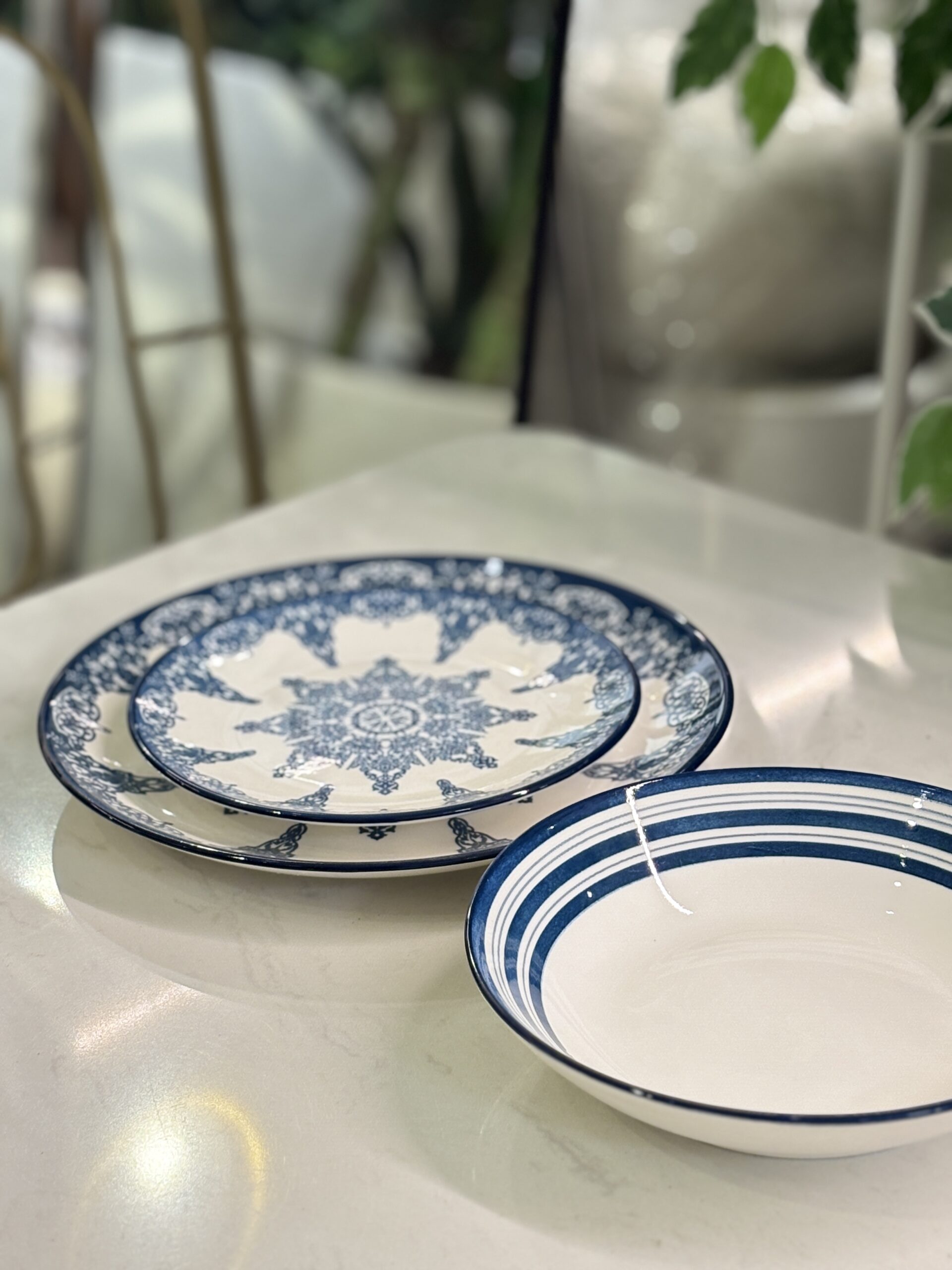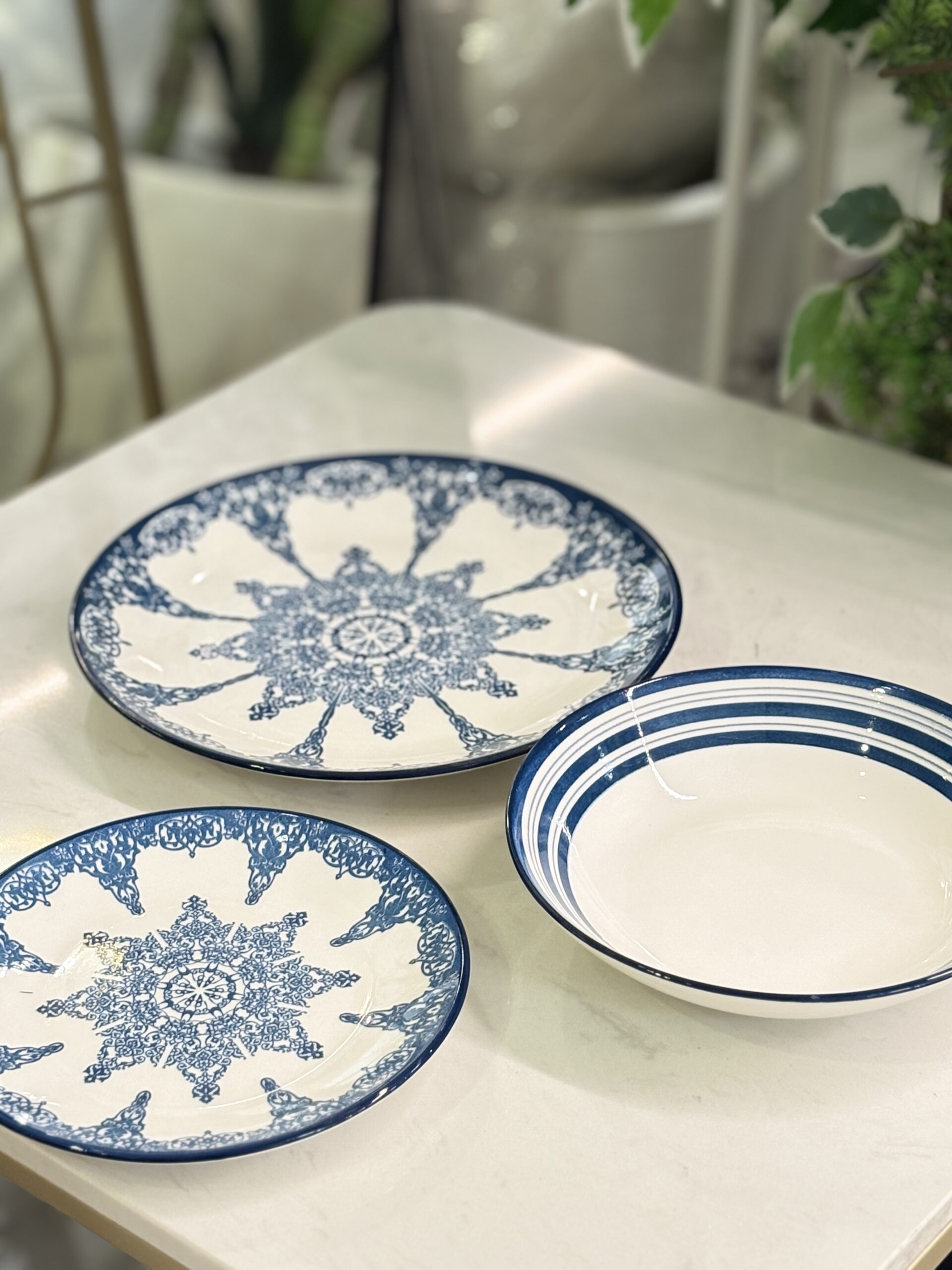 طقم صحون 18 قطعة بورسلان منقش ازرق