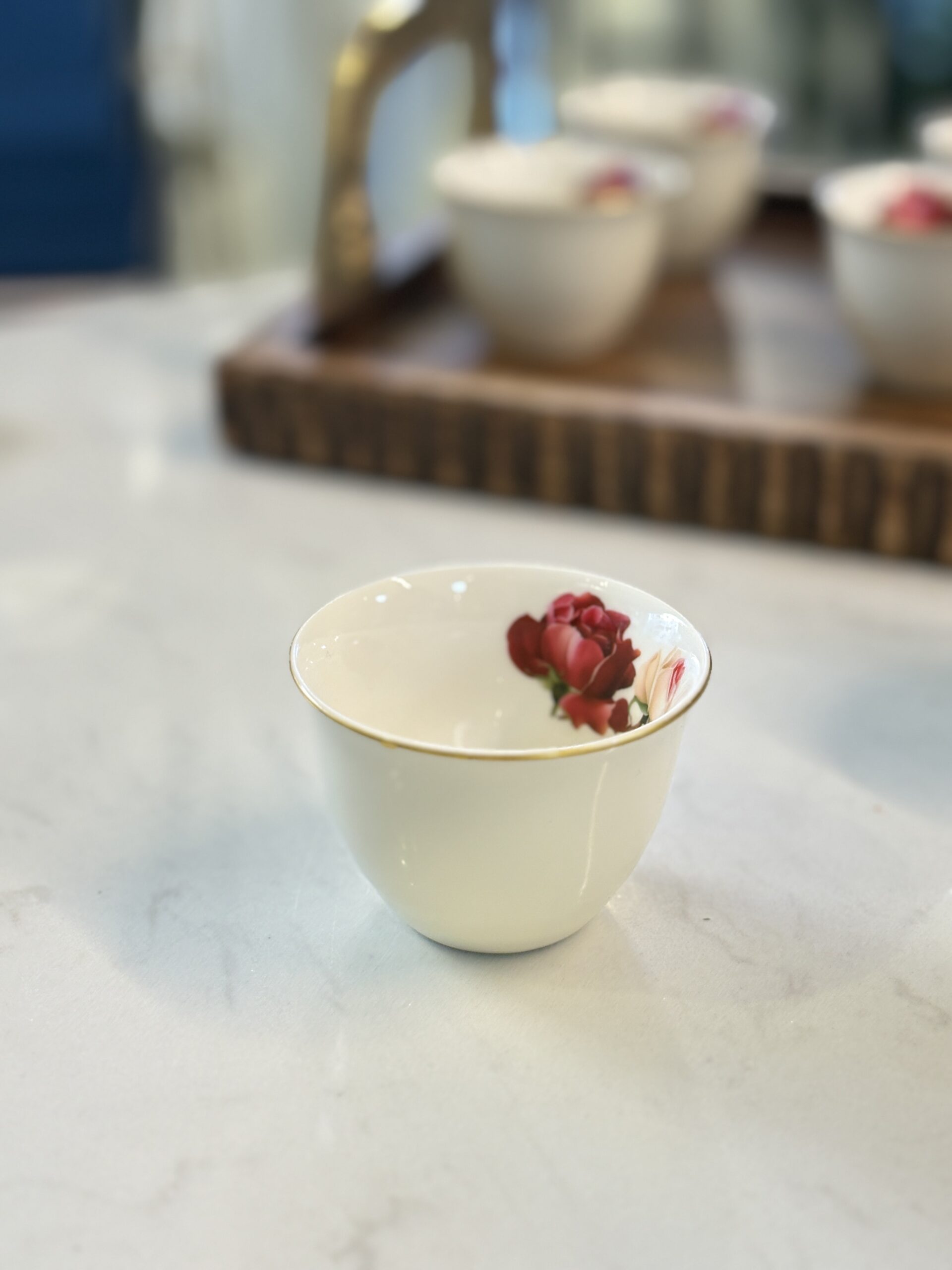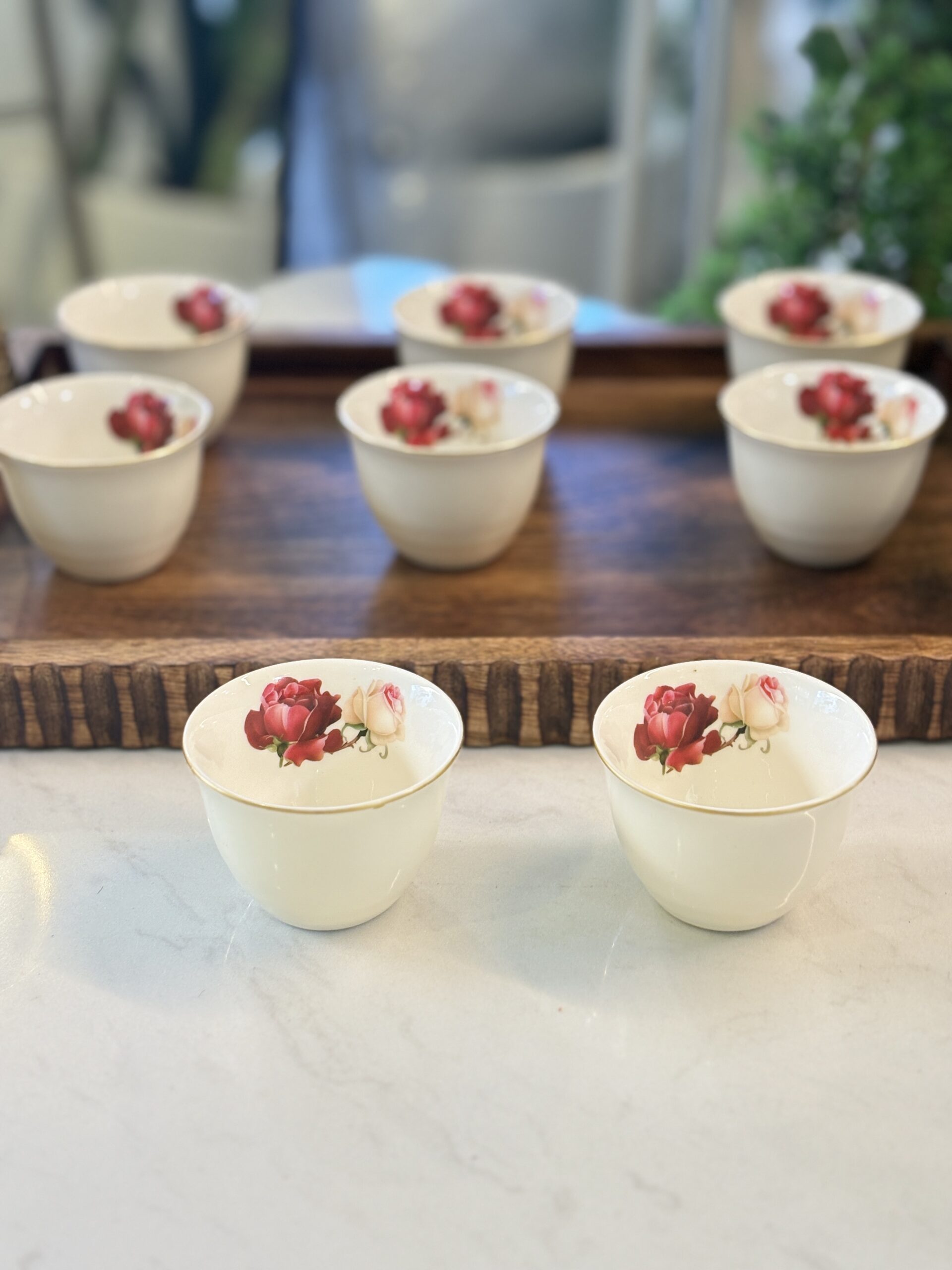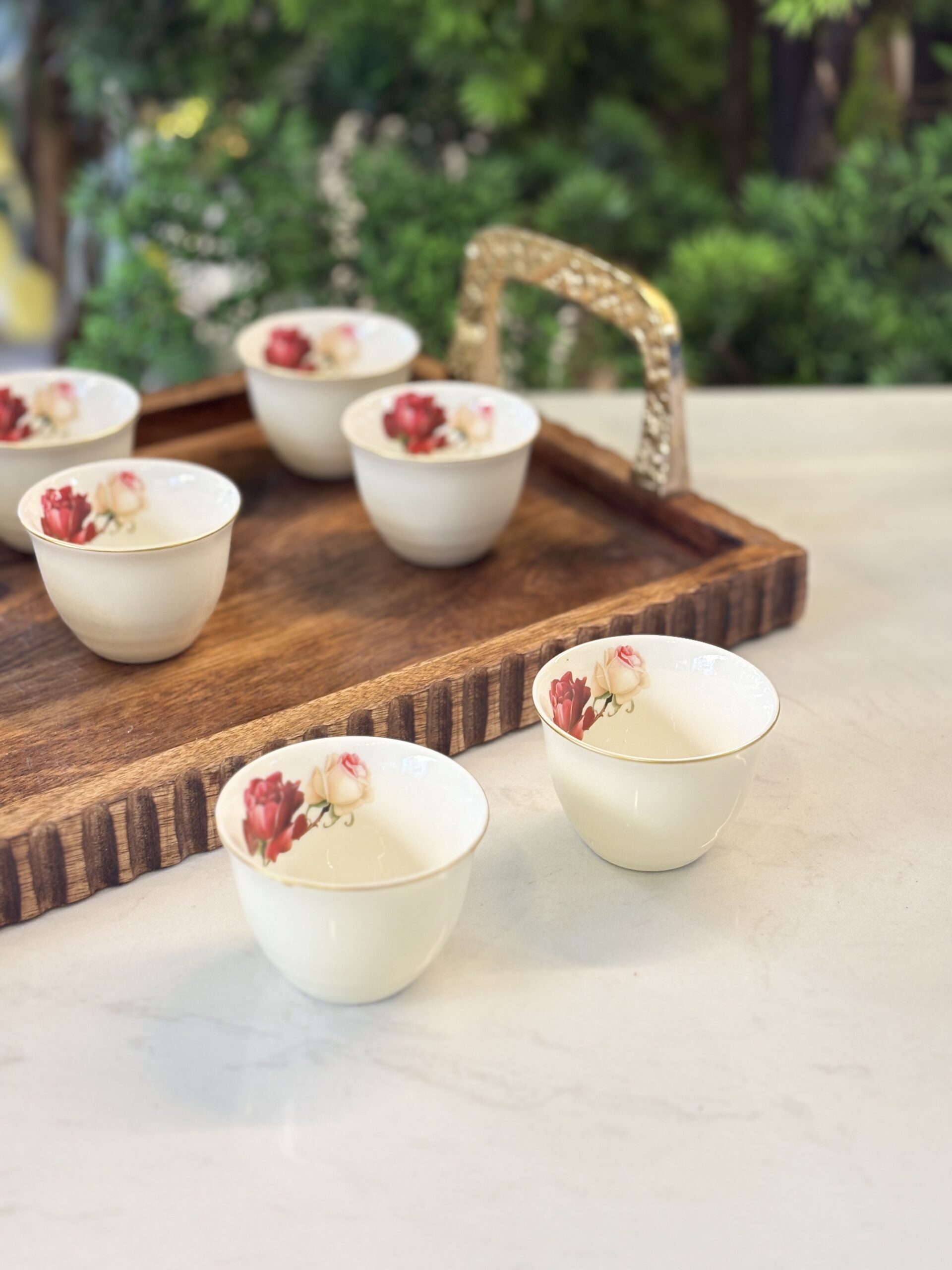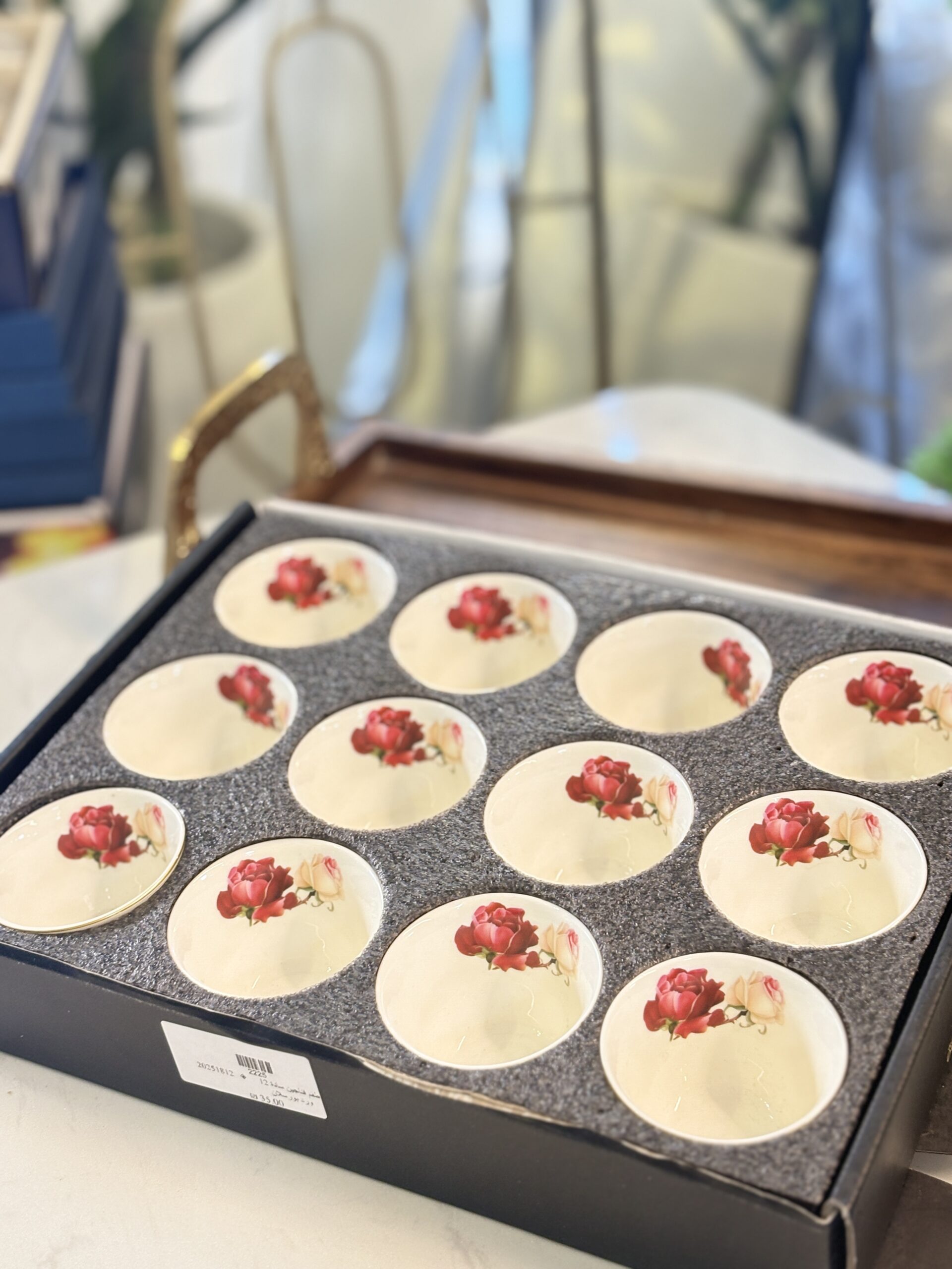 كمية طقم فناجين سادة 12 ورد بورسلان