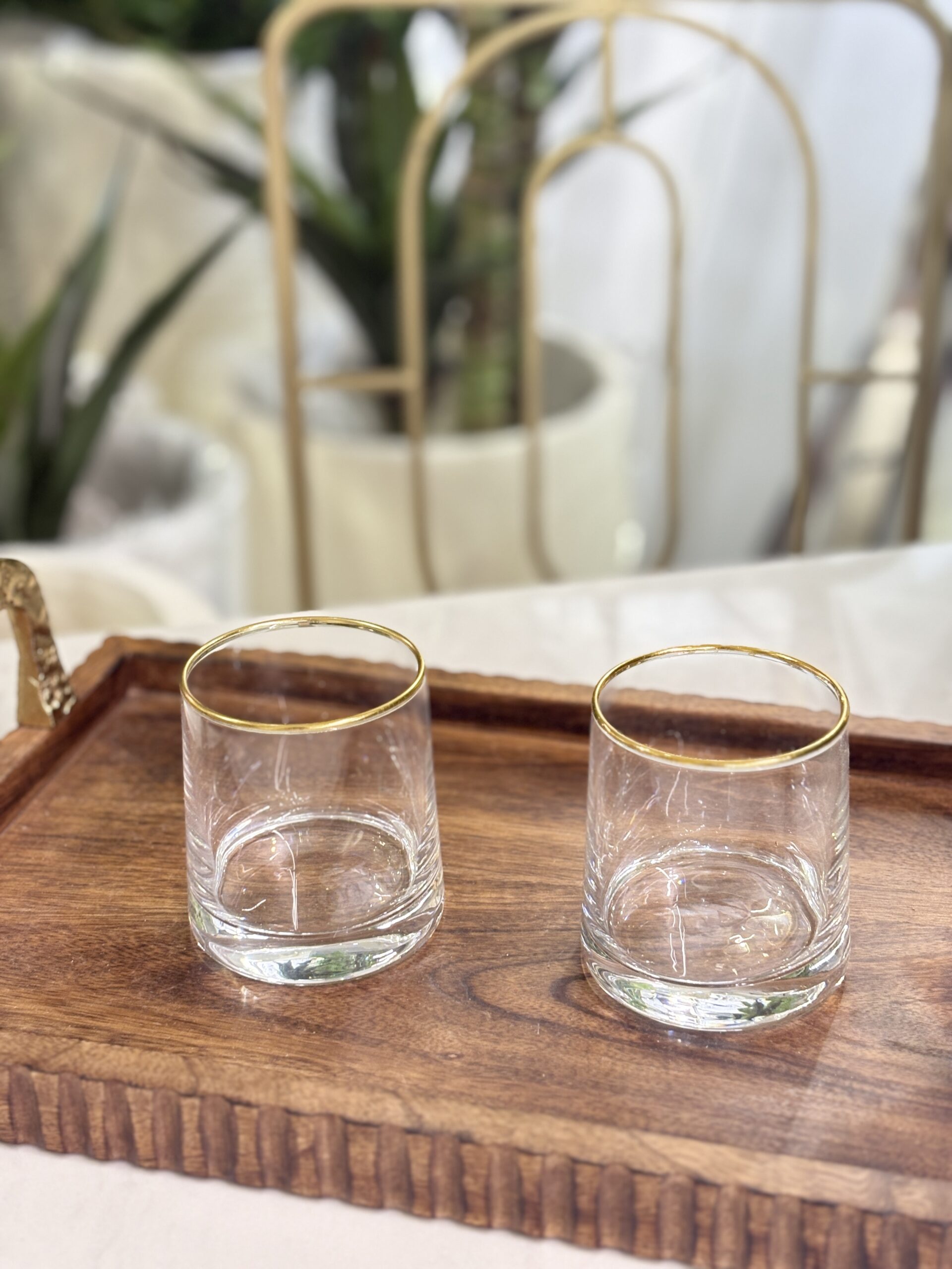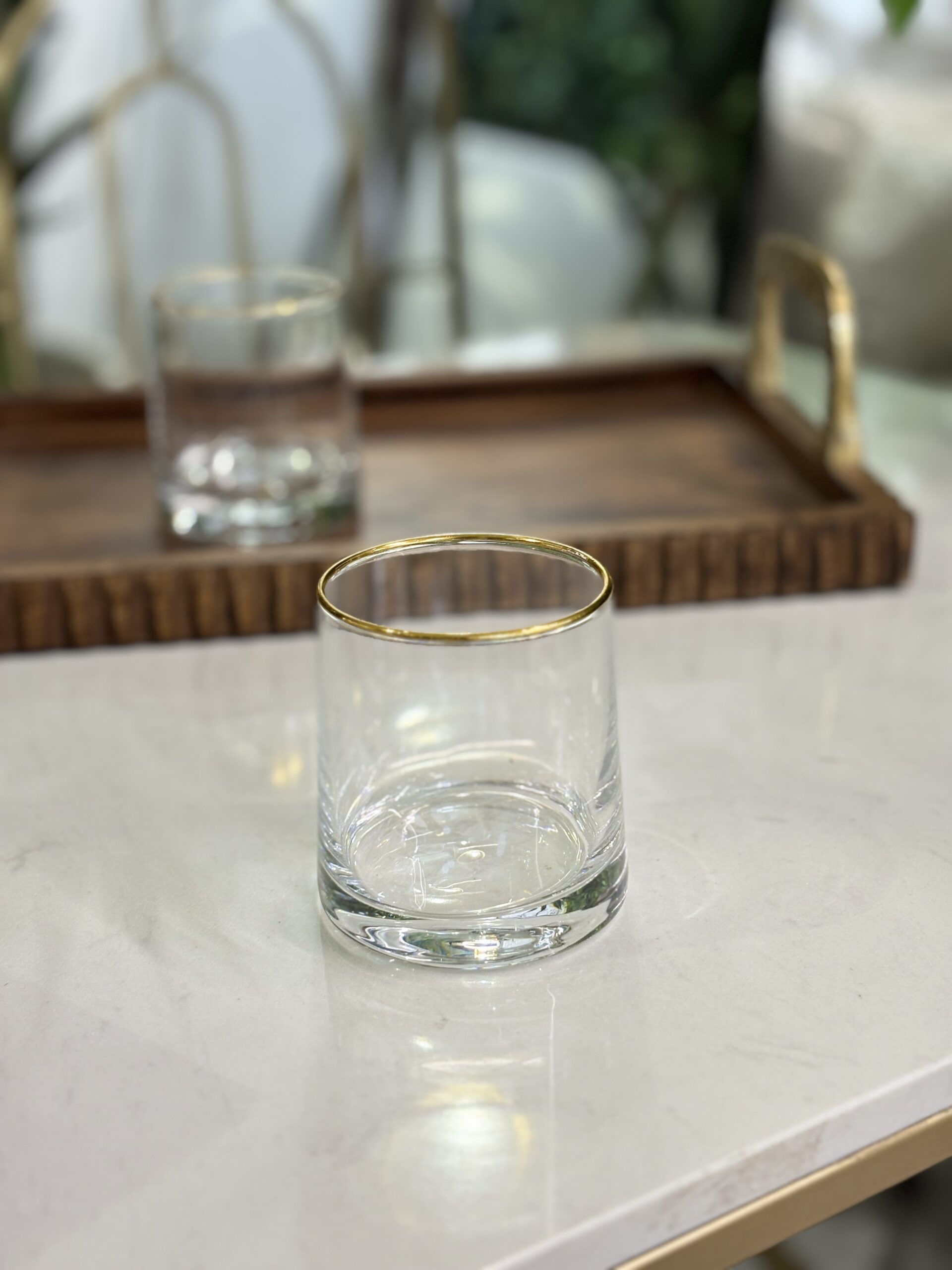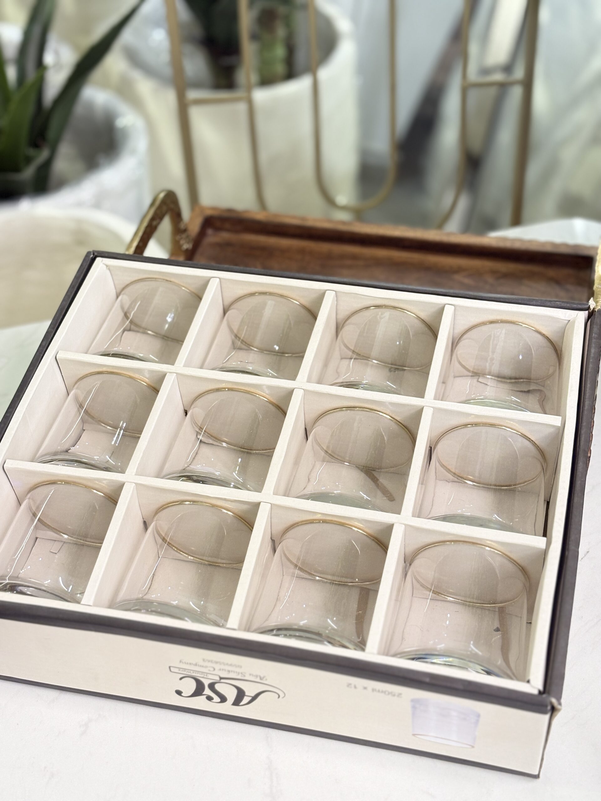 طقم كاسة شراب/12 زجاج 250مل اسطواني حيف ذهبي
