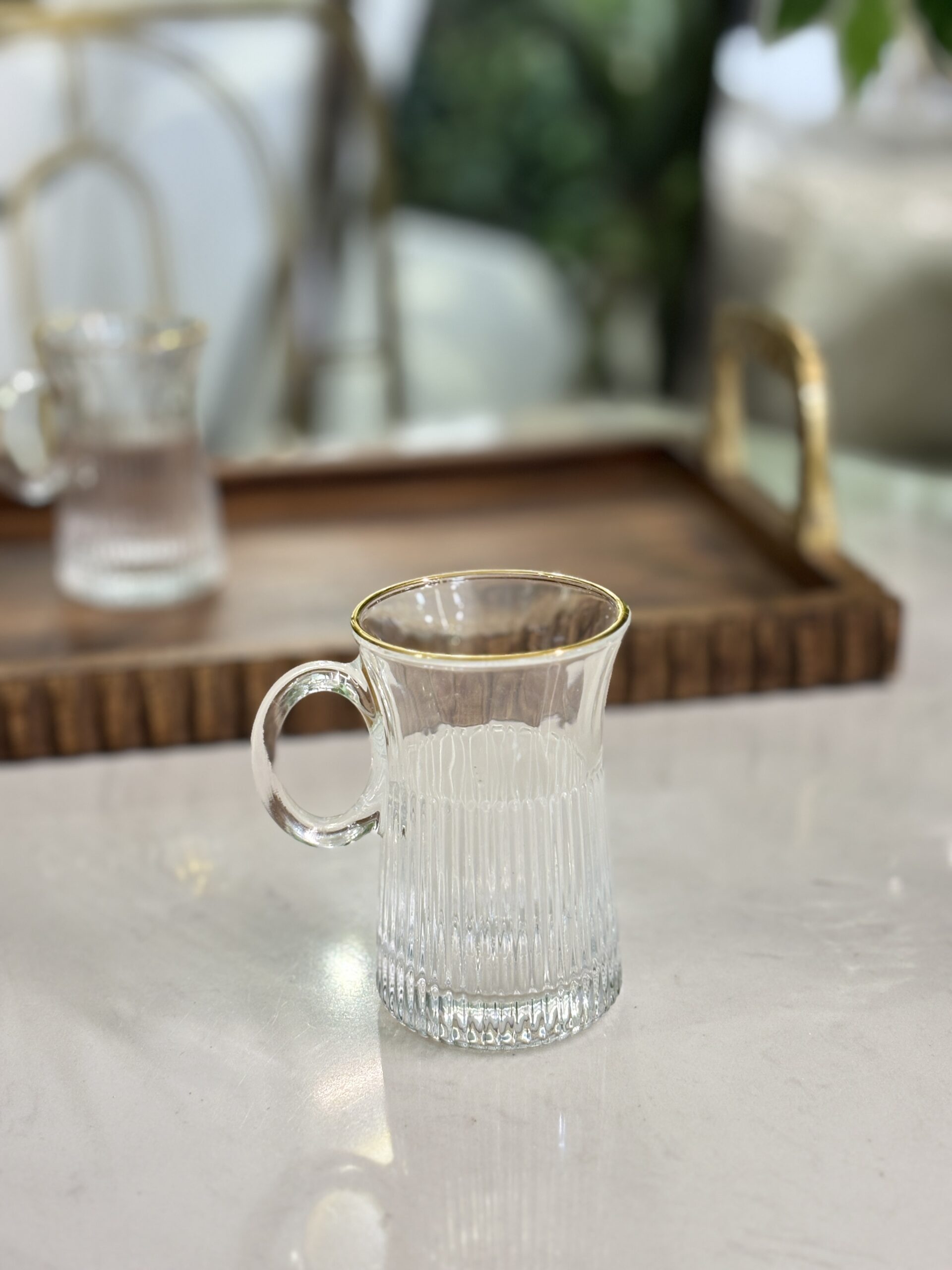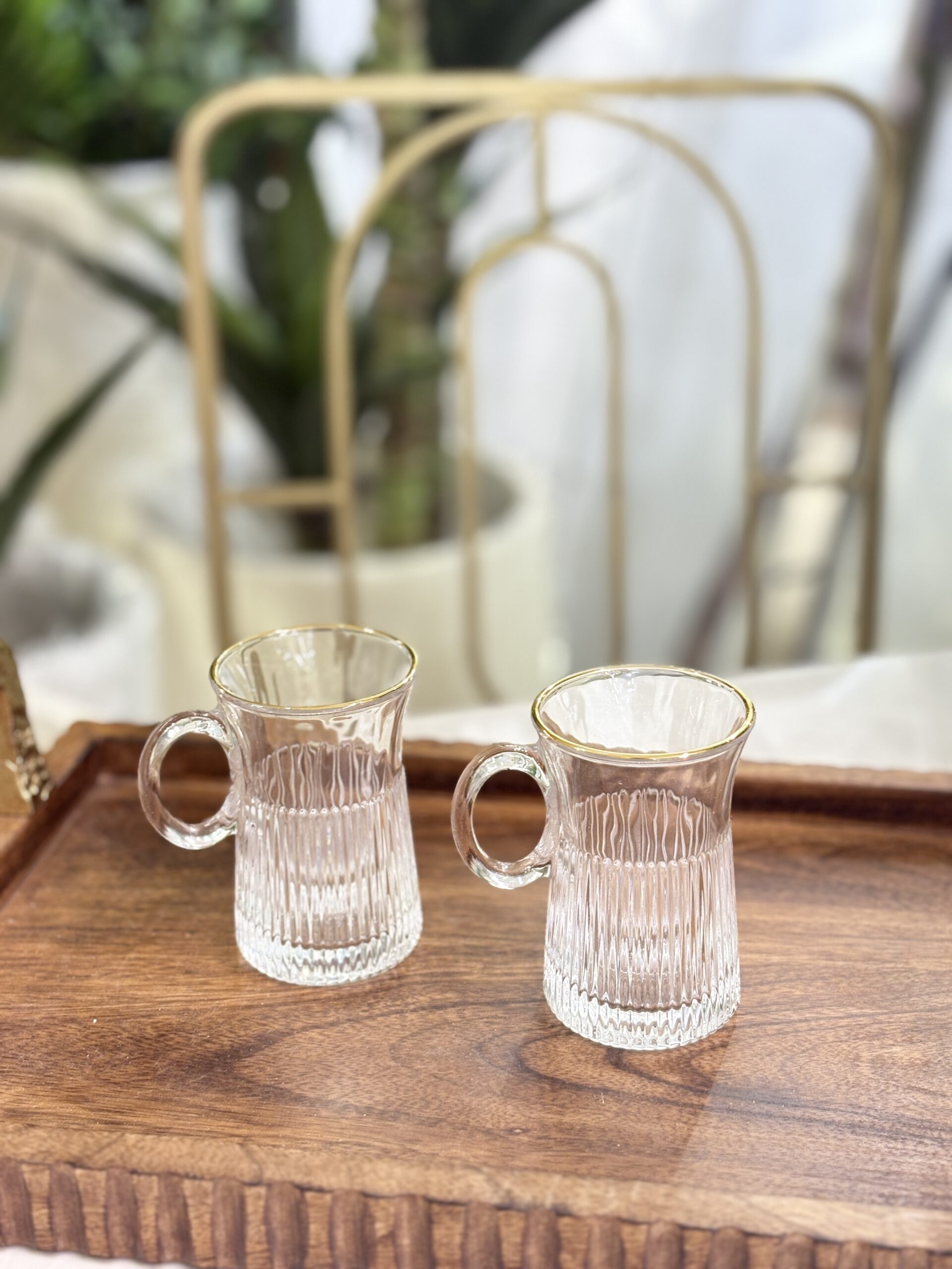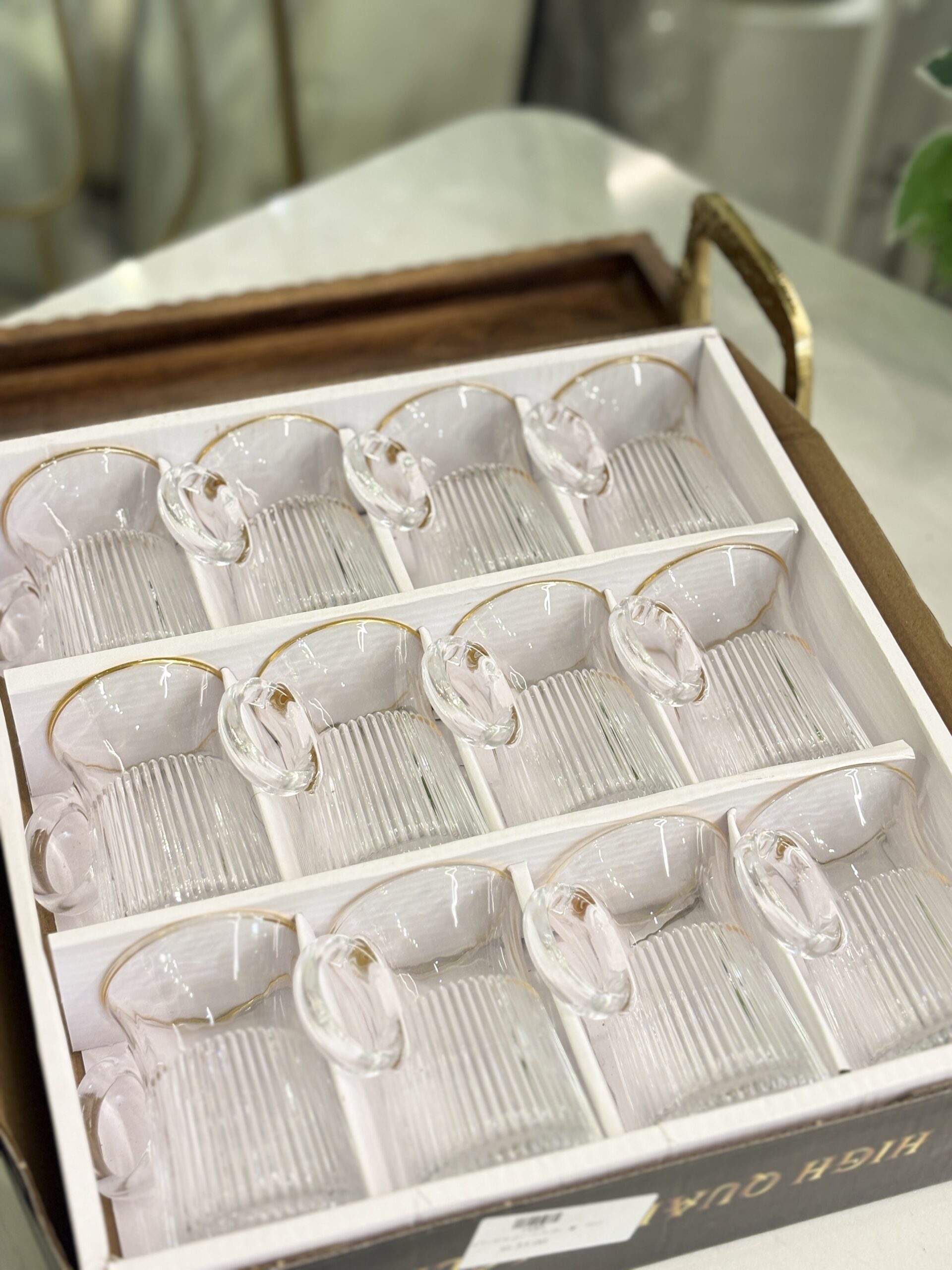 طقم 6 سكريات زجاج مع غطاء حز ذهبي ميرانو