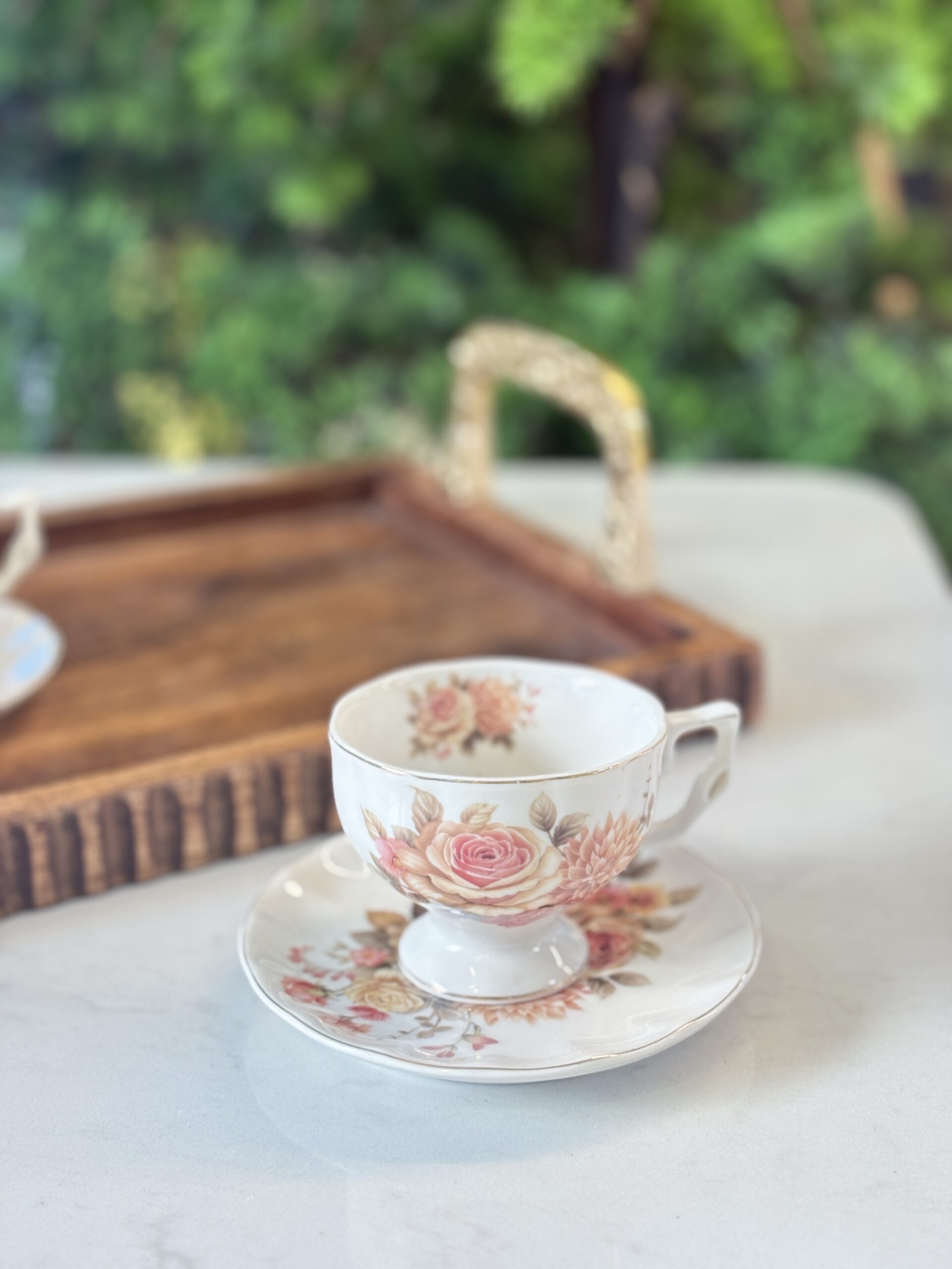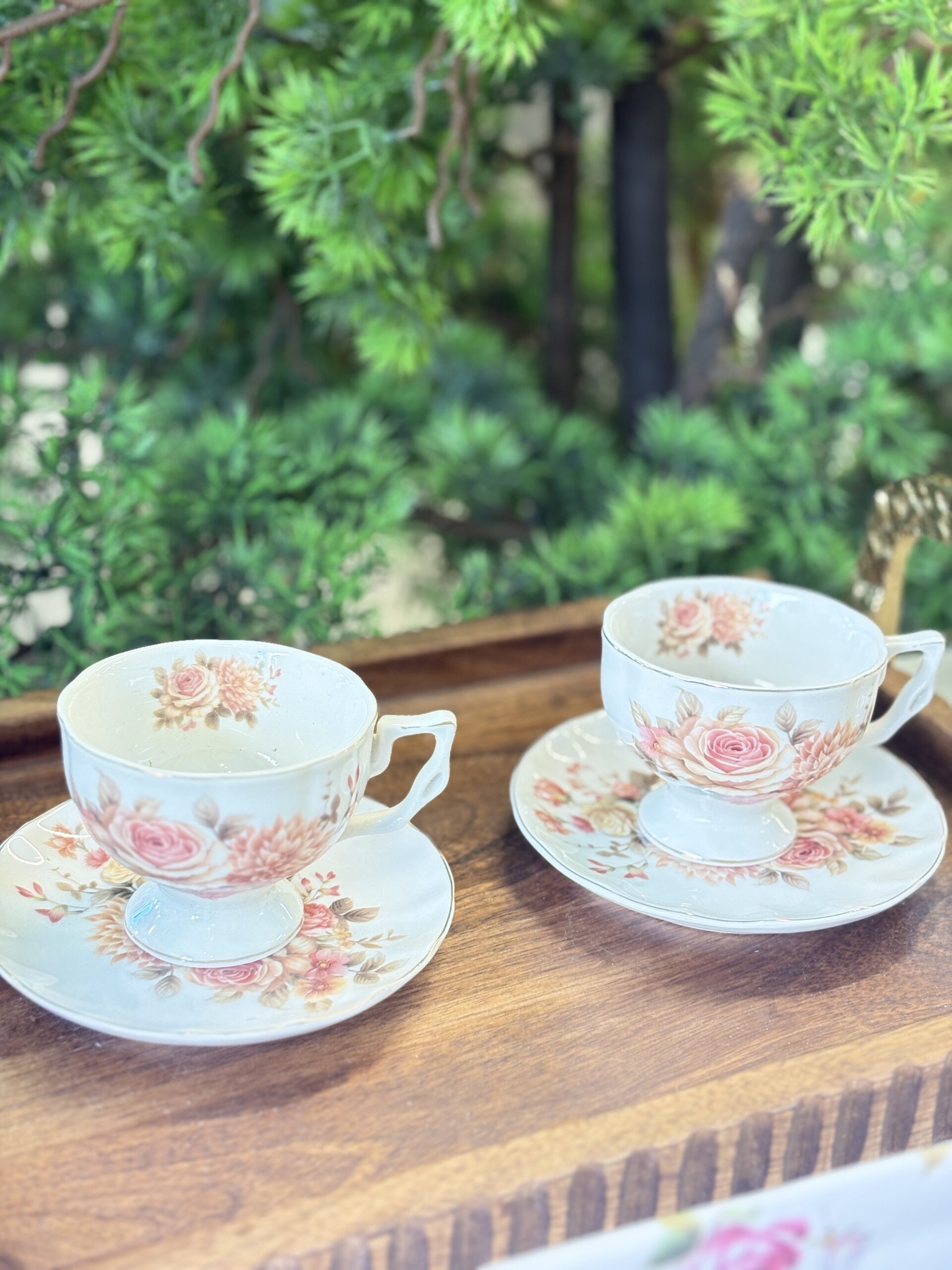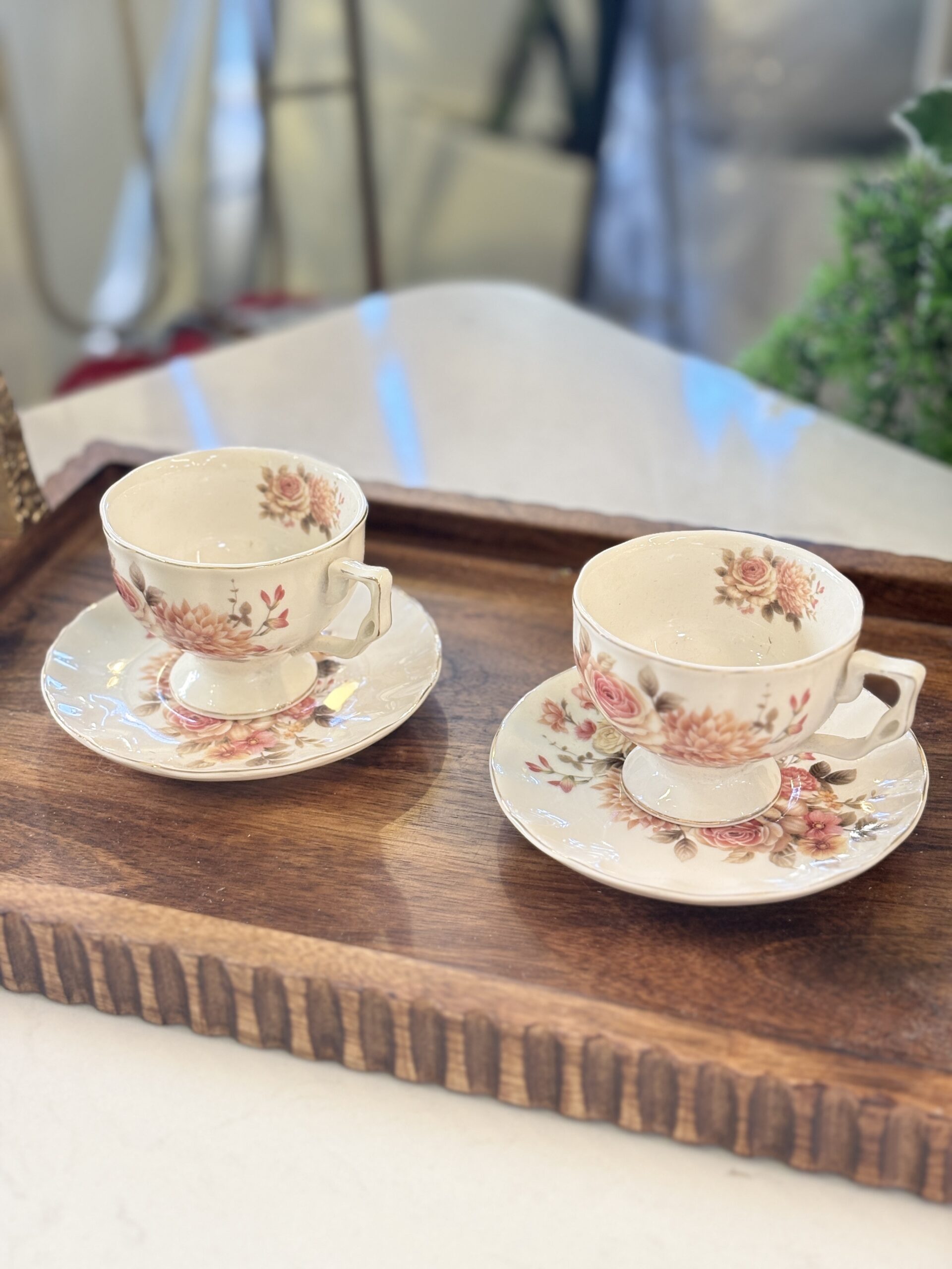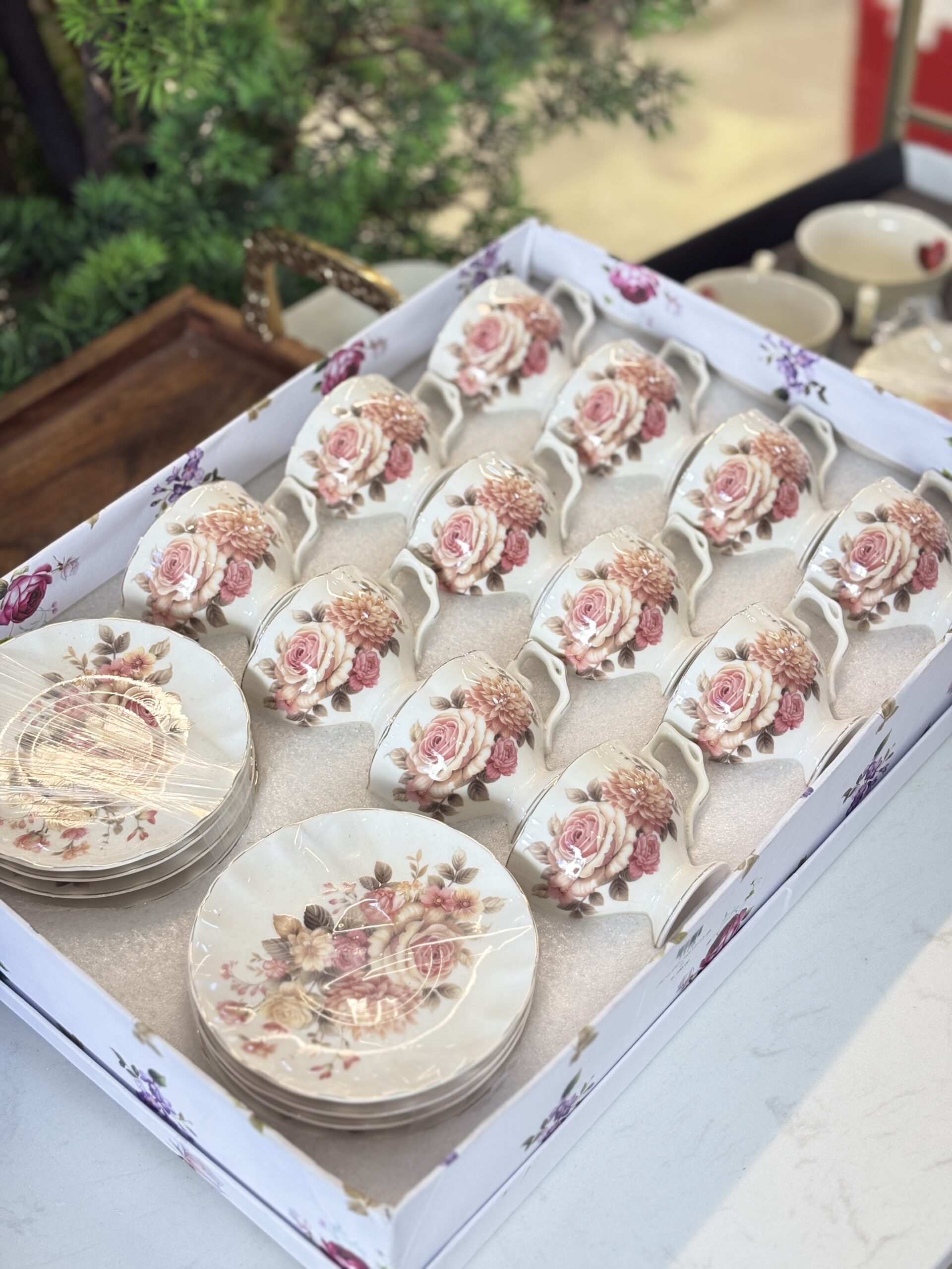 / طقم 12+12 فنجان انجليزي ابيض مورد