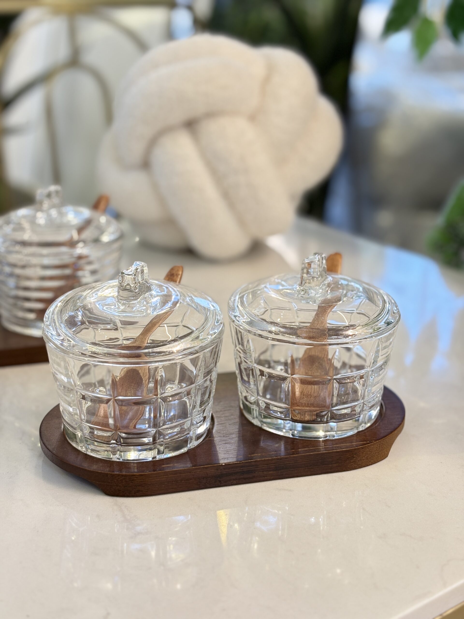 كمية طقم 2 سكرية خشب ثقيل محزز مربعات
