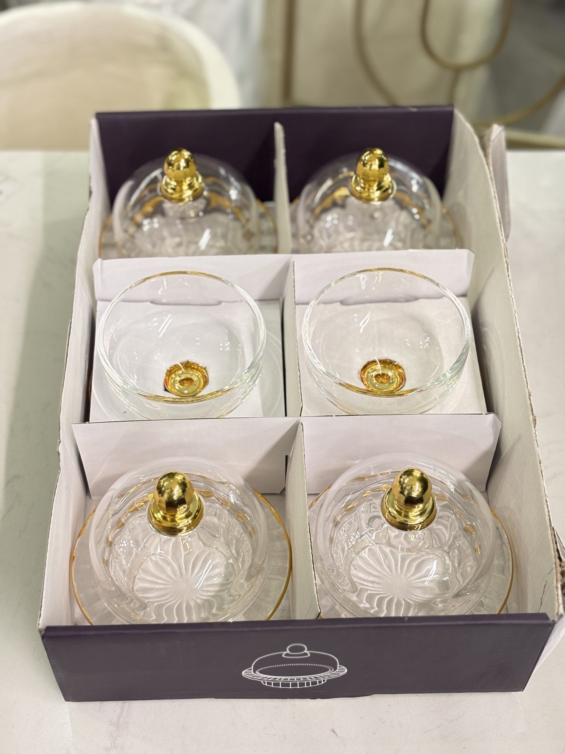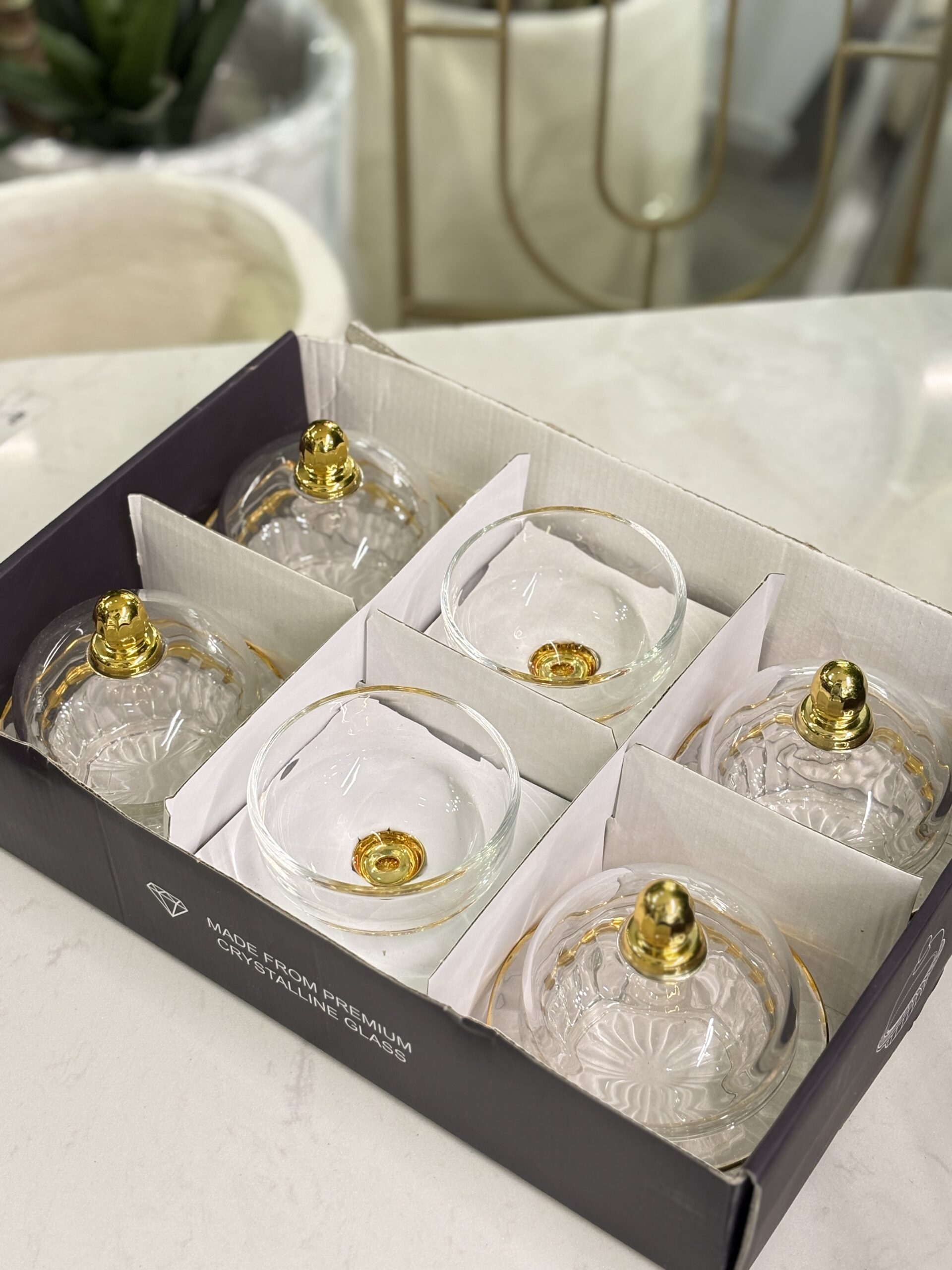 / طقم 6 سكريات زجاج مع غطاء حز ذهبي ميرانو