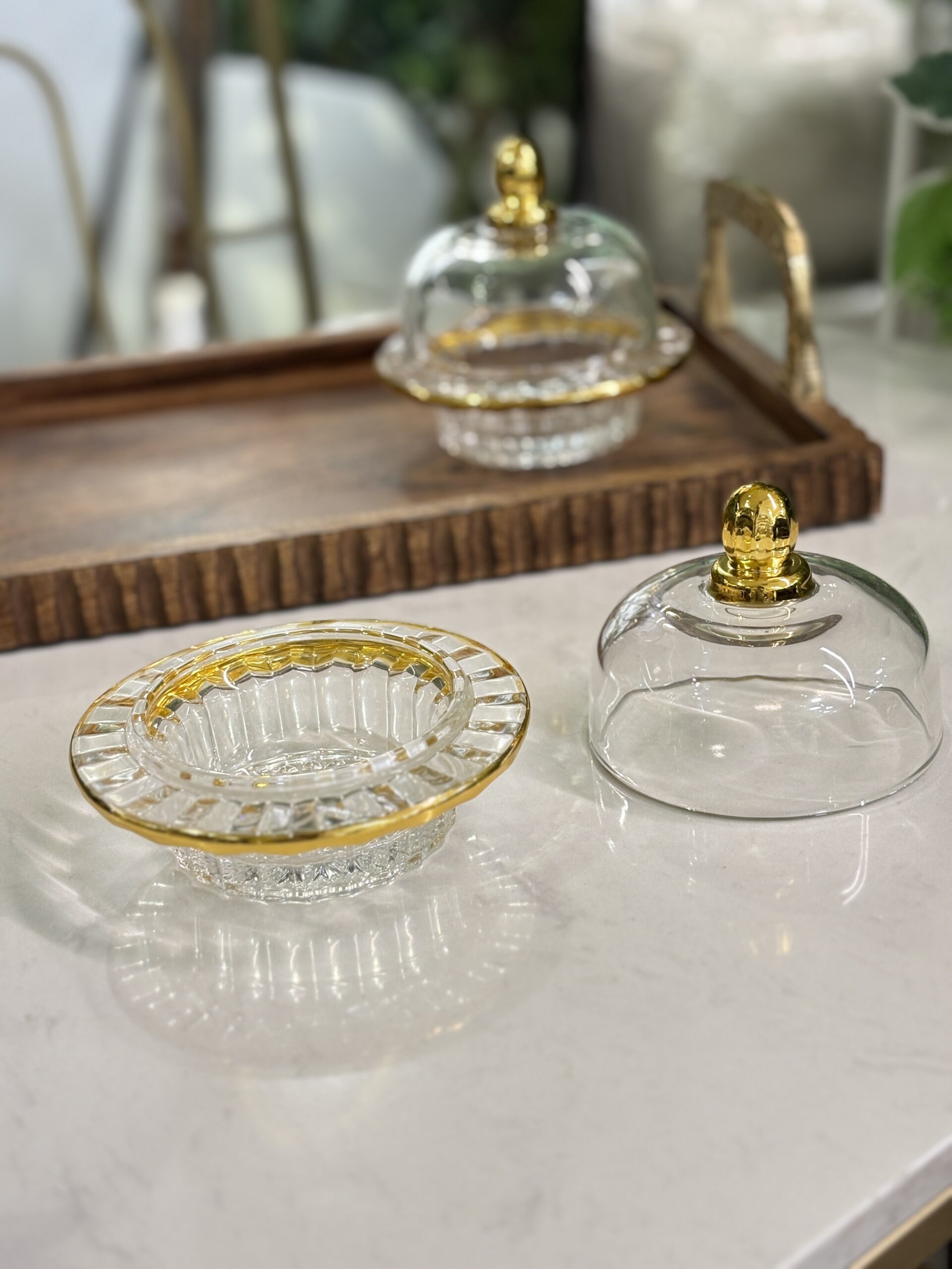 طقم 6 سكريات زجاج مع غطاء حز ذهبي ميرانو