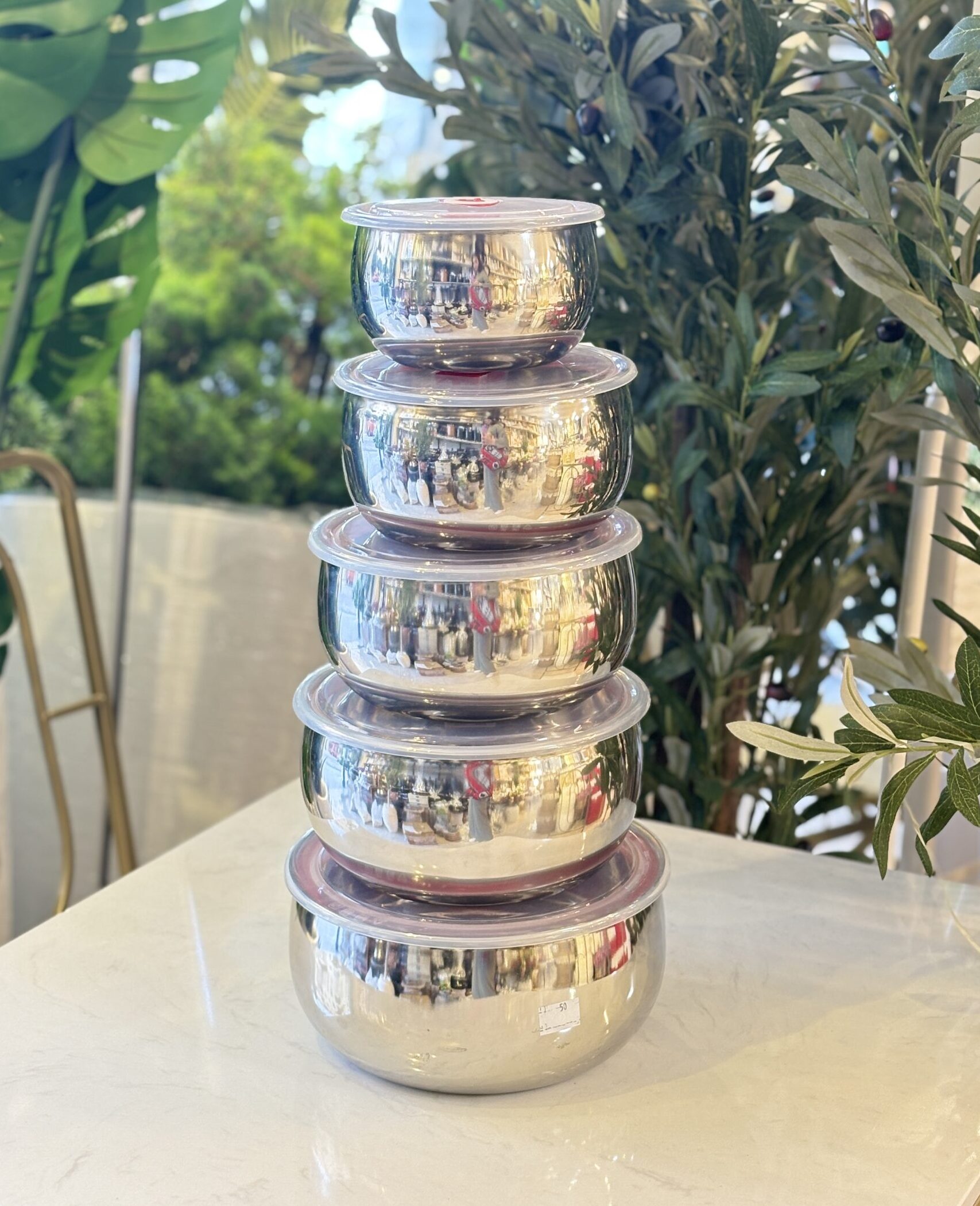 علب طعام ستينليس مع غطاء