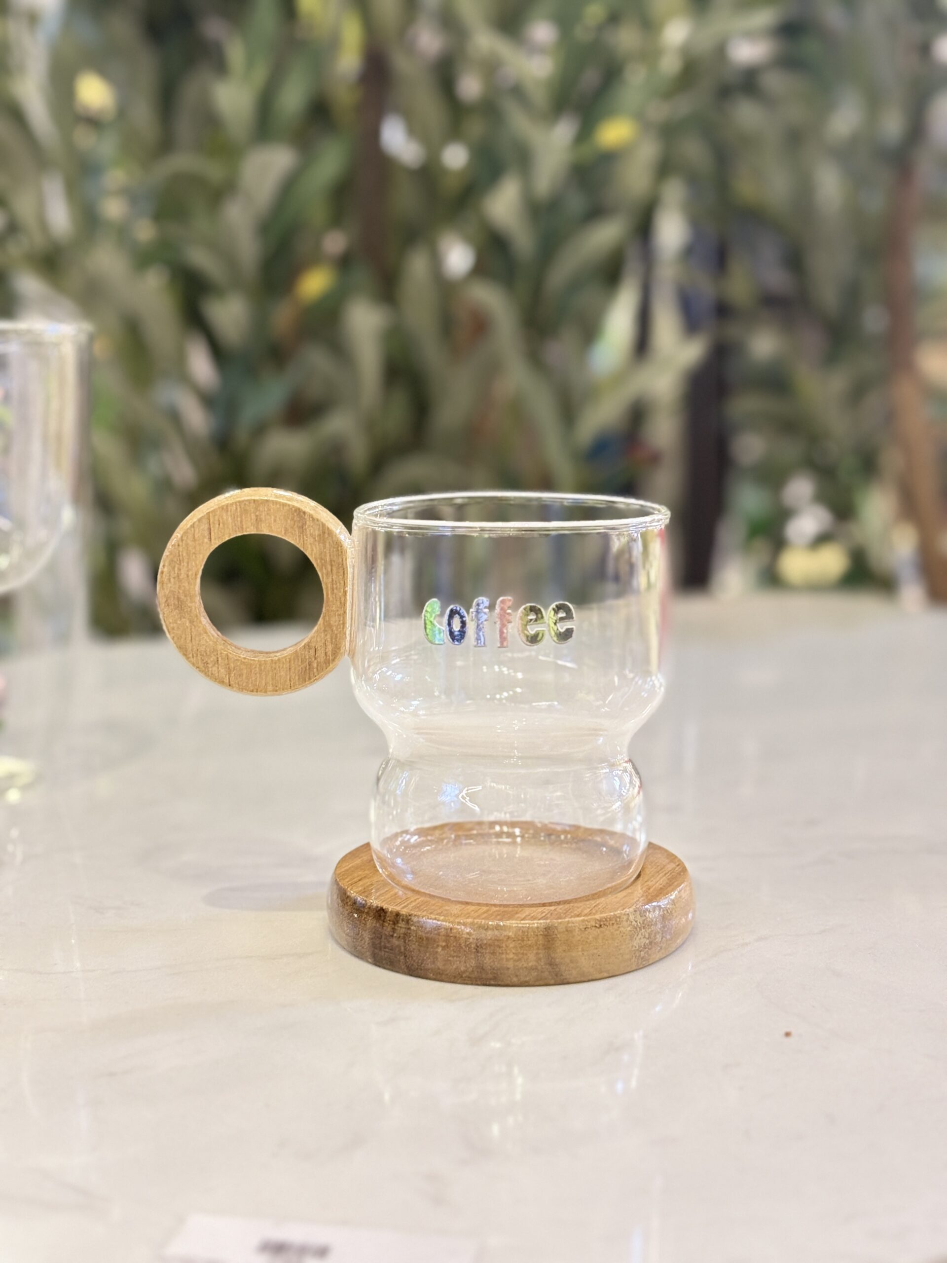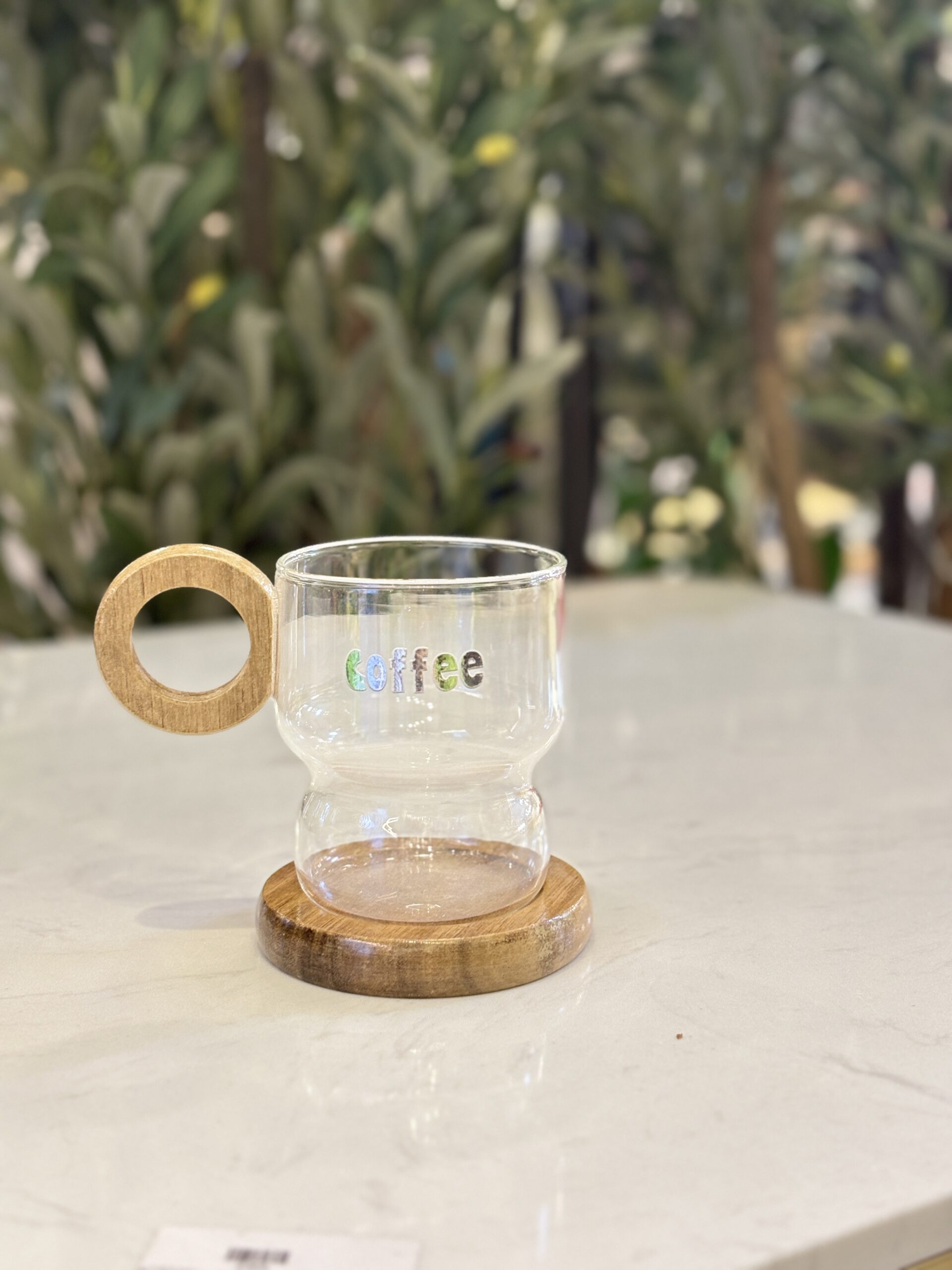 كوب مع يد وكوستر خشبية