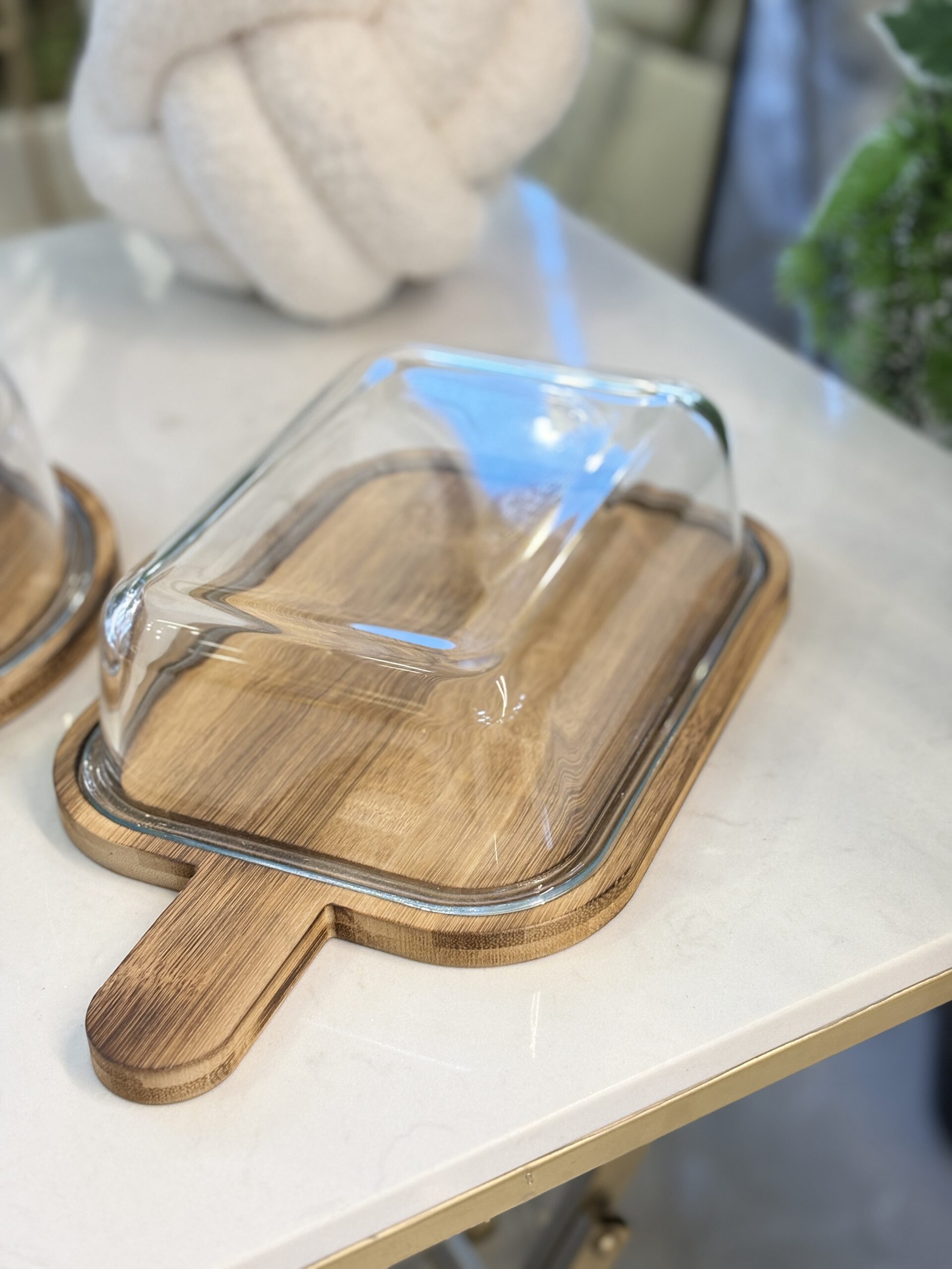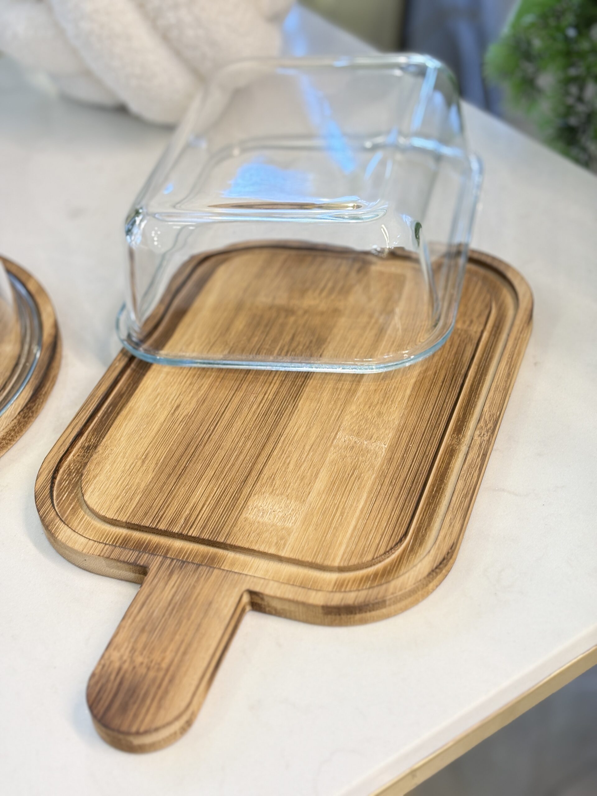/ مضيفة كيك مستطيل خشب مع يد